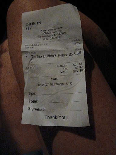 Read more7 years ago I gave a 5 star review changing it to 1 star. When I told her I disagreed with the weight and asked her to reweigh she laughed 27.88 for a Togo plate!!! Seriously I should of said keep it but im not like that. Two people with me paid separate got two full Togo plates for 19$ she over charged me she was rude ill never go there again wish someone else would open another place I'll gladly take the money I save go to owensboro where the food isn't a day old anyway!! I'll...