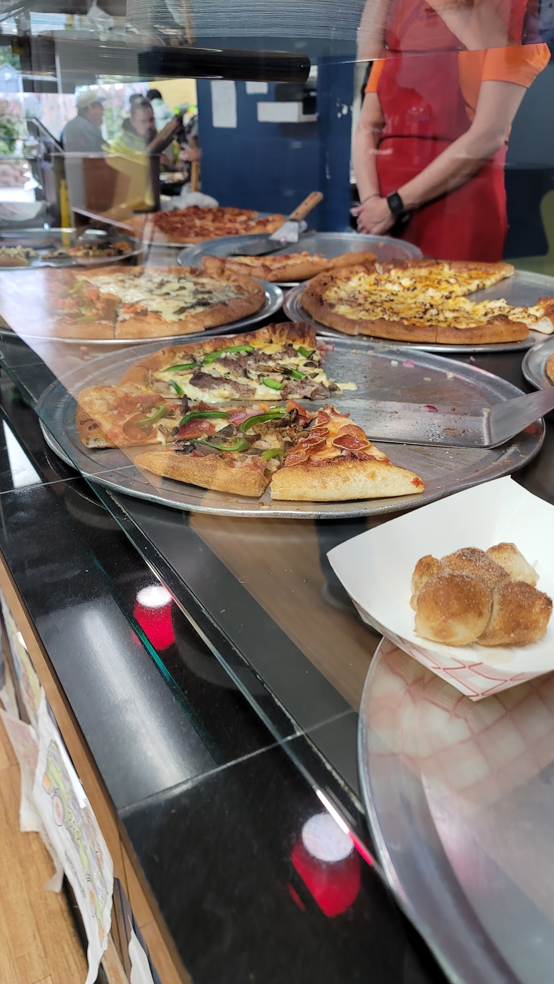 -------------------original review below------------------------ The food is good, when you can get it. I recommend you call ahead or order online whenever you can, especially if a sandwich is ordered. I went at lunch today and got two slices, a sandwich, and a drink. I got the receipt via email at 11:57 am. I had the two slices warmed up about 5 minutes later. Almost 20 minutes later I had to choose whether to wait an additional 5 minutes for the sandwich or getting in trouble at work for being late. I had to "eat" the cost of the sandwich too since there wasn't time to get a refund. That part is my fault though for not asking sooner. But 20+ minutes and STILL no sandwich is pretty ridiculous.