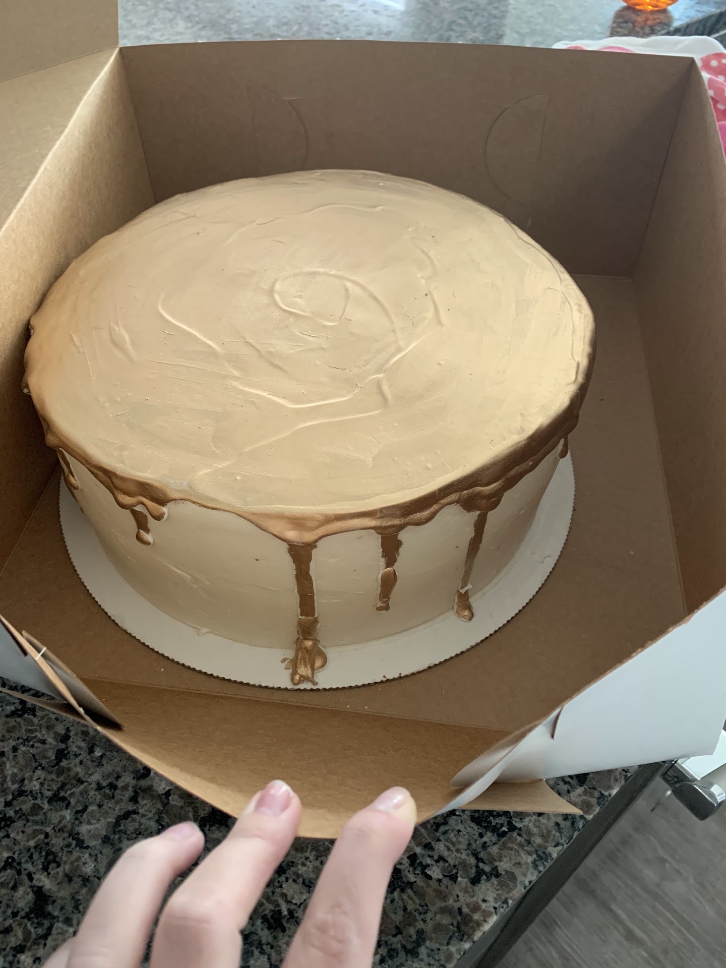 Nothing fancy, just a 6in cake with white frosting, maybe some pink. The lady who helped me mentioned she was the one who was in charge of fb messenger and had spoken with me earlier. She checked her calendar and said they were not booked and started writing my order on a blank page and mentioned that the cake was needed on a Monday, but she could have it ready by Saturday for pickup because they are closed on Mondays. She assured me they put enough buttercream in their cakes that they stay moist for a couple days. Not ideal, but the cupcakes are good so I said that was fine.