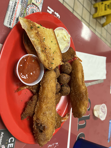 Seafood platter was a huge disappointment. Overcooked, which made it oily and a bit hollow as fish gets when overcooked. I would rather have less shrimp, less hush puppies, one less cod but larger and with better quality. Generous portion cut into the quality on P&L. Hush puppies were small and overcooked. The side salad was great presentation and delicious with a different kind of blue cheese. Culver’s has way better cod and hush puppies way better at LJS. I felt like seafood platter was just GFS or Krogers frozen items fried by the cook not watching the basket and no timer. Too busy cleaning to get out I guess. Fish seemed more like a cheap cut. Again Culver’s is top notch and sets the bar at same price level. That is my comparative reasoning.