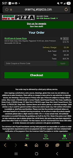 Read moreSo we love Jets, but this location is SO slow. Every single time we order it takes 30 mins to over an hour to get our delivery. Last week it was an hour and a half past the delivery time that we got it. Today I am STILL waiting. We order WELL before "peak" deliver times, yet it's late every single time. Y'all need to work on your quickness and delivery times. We can order from Domino's and get it BEFORE the stated delivery time even on Friday and Saturday nights. Get it together Jets! When it says a delivery time, you should be here at or before the time...not ridiculously late every time. And then charging a fee...to be an hour late...get rid of the delivery charge if you're going to...