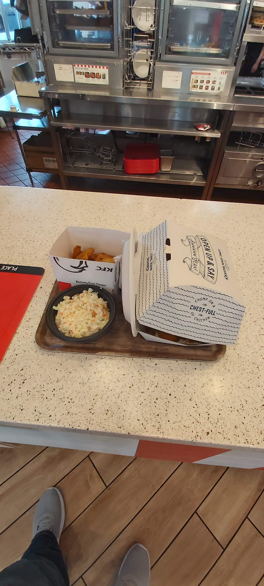 Read moreI placed an order on the KFC website, it said that I needed to be there at 5:11pm to pick up my order. It wasn't a large order really, enough to feed 3 people, one being my 4 year old who was with me. I get to the drive thru and I'm told to pull forward. Someone comes out and tells me that it'll be a 14 minute wait. 30 minutes later I go back through the drive thru and get stuck for 15 minutes or so before getting to the speaker to ask about my order for the second time... I'm told they have it. I finally, nearing an HOUR after I should have had my food, get my food. It's warm at best and they forgot my drink. I've already called corporate. Watching 20+ people go through the drive thru and leave with their meals and not having mine has ensured I won't...