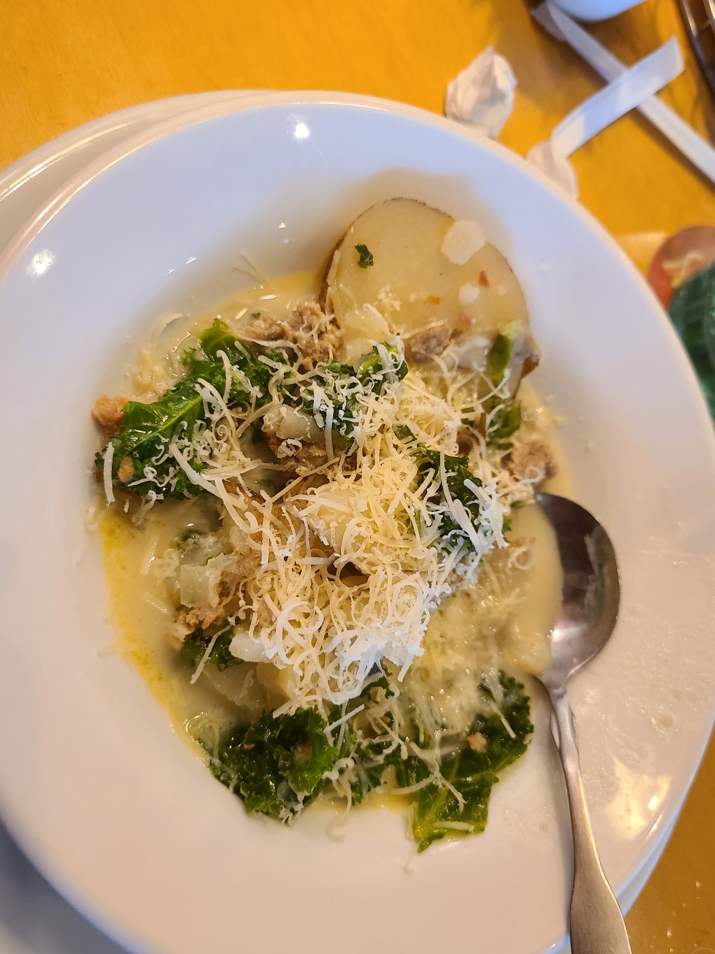 Read moreVery poor experience. Food was actually good and was flavorable, but first thing is you sit 4 grown adults at a small square table, that is only big enough for 2 people. The next table over had 3 adults for a table for 6. Go figure. We order our drinks and food at the same time. I ordered a to go order, and it was brought out while we were eating our salad, so i had to sit it between my legs on the floor for our entire meal. Salad and breadsticks came out before our drinks. We were pretty much sucking on the tart salad dressing before drinks. The drinks finally came for 3 people, and the other adult didn't get a drink until they were done with their salad. We had to ask multiple times for their drink. Was not asked about refills until almost done with our meals, so what would have been the point. We had to basically hand our waiter the checks after about 10 to 15 mins so we could pay and then leave. The kiosk had to be moved, and a waitress took it to add some room, but we never got it back. They saw us the entire time. It was the worst experience I have ever had at that restaurant.