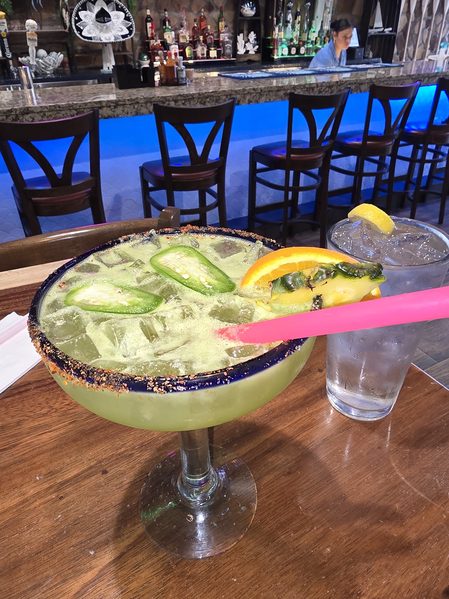 Read moreThe margarita tower, all flavors, is a must, but requires 3 people comfortably as a minimum. The margaritas flight is also very good, just not quite as much fun. The appetizers we had, crispy fish and empanadas, were excellent. The crispy fish was perfectly prepared and not over cooked. Being from Florida, that matters, and the result is noticeable once you've had fish cooked to perfection. Can't say if they're consistent in that, but when we visited, they were. I say that because i ordered the fish and shrimp with cheese sauce dish and it was over salted or too much salt in the seasoning mix used. I'm on BP meds that keep me at 120/80 or close to it, and my BP was 158/110 the next morning. Could have been a heavy hand. Some of the Cajun and creole seasoning mixes have more salt and if one was used and salt added, not so good. I've done that at home when I ran out of one, so maybe that's what happened here. The chicken nachos were also eccentric, good cheese sauce, different approach but very good. I'm going to try the beef out steak nachos next, and maybe get the fish fritters again, next...