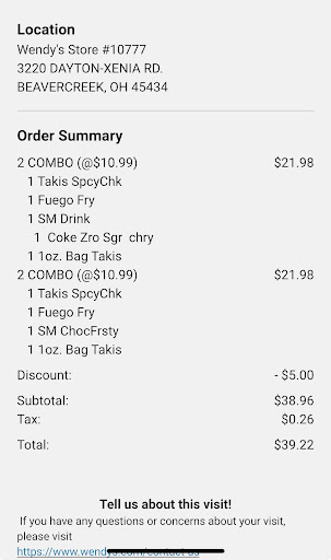 Read moreOrdered 4 Fuego meals on the app. When we got to the store for pick up, we were only given 2 meals (without the chips). Employee said they only got an order for 2 meals so we went in to speak to them at the counter, app in hand. Showed our receipt to the manager , who threw their receipt on the counter for my order which only reflected 2 âmealsâ where everything was individually rung up, meaning I wasnât even given the combo meal discount. The woman Iâm assuming was the manager because she was berating a young employee before âhelpingâ us, was standoffish and said there was nothing they could do since she âjust got here.â Another woman kept flashing a receipt in my face and refused to call whomever she said she had to call To get my money back. I wouldnât have needed money back if theyâd have just given me the 2 other meals but I guess it was more important to the store to honor their in store receipt than the app receipt. Employee said this happened to someone else too so itâs apparently a known issue. I had to buy 2 MORE combos in store because they refused to honor the in app receipt and bank posting showing we paid for 4 meals. Donât bother with this place. Freddyâs is cheaper, you get what you...