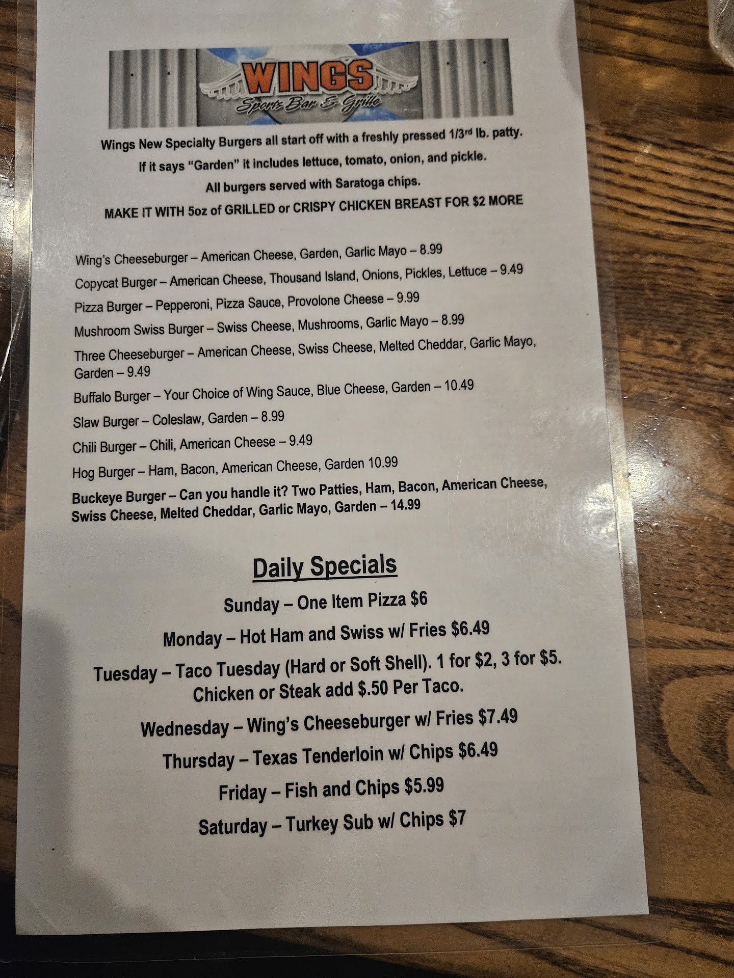 We ended up leaving and going to another restaurant. When we got to the other restaurant, the waitress said she heard nothing but bad things about Wings. This was our first and last visit here.