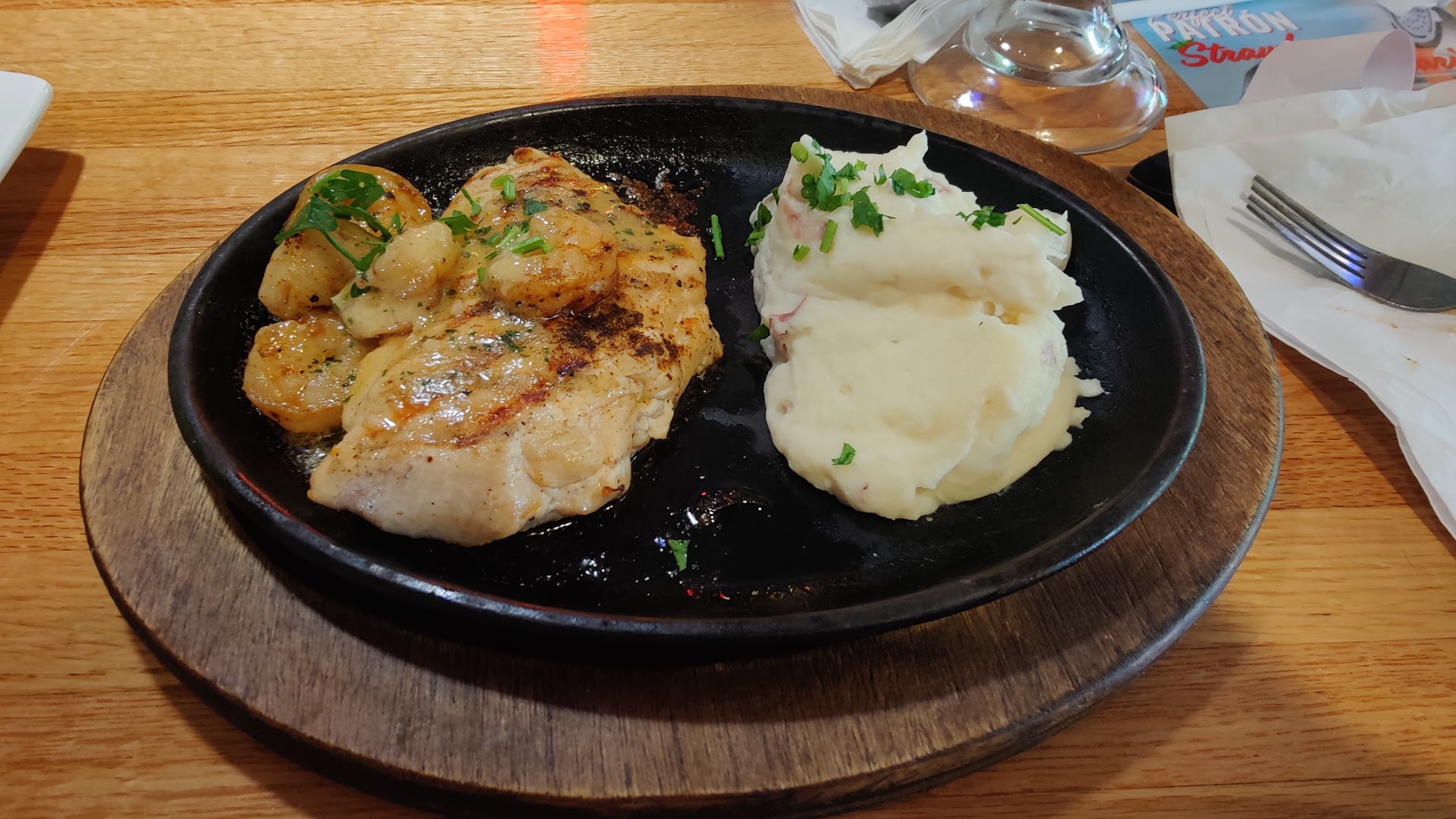Read moreIt was our first visit here & the place was packed which wasn't a surprise bcos we had been eyeing this place since few months but couldn't go. After the visit I have no idea why it's so crowded. Food was very mediocre. Infact we have our minds bitter of spending our money here. Several negative reasons- Even though there were few booths available, we were not asked but quickly given chairs which were uncomfortable. Usually we are asked of our pref. Mine & my daughter's drink came quickly but my hubby's sangria came on table after the appetizer which was like 20mins. Our chicken wing appetizer was lukewarm but the waiter just kept on the table & left. No utensils or tissues/paper towels were given. Aft waiting for 10 mins, my husband had to go in search of waiters to ask. He came aft 5mins rushed & didn't bother to even check if the chicken got cold. All he said was 'i thought u were given the utensils'. Like seriously, who will give us other than the person serving our table. Food was really ok. Bourbon Chicken & shrimp brisket was fine acc to hubby. My fish & chips were not great. Fish was not cooked well & zero seasoning. Kid's chicken Alfredo was fine. Again zero seasoning & chicken was not grilled as mentioned in the menu. We waited for 15 mins after we finished, again no sign of anybody. Then he came quickly, gave the bill, attended another table, took the card & left. No asking about the food or if we want anything else or desserts. I wanted to order the skittle dessert but all this experience made me annoyed & I just wanted to leave this place asap. Anyways, I got my expectation wrong on this place, hope u won't be disappointed if u visit, even aft reading...
