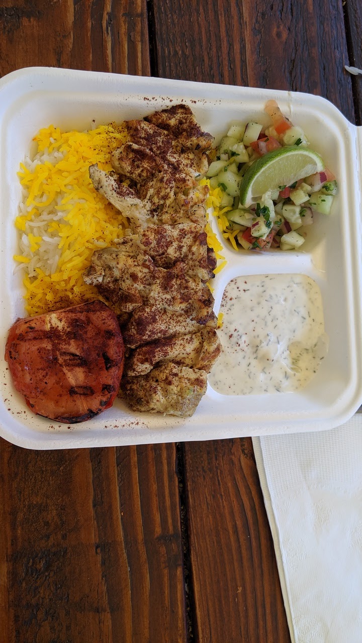 When we visited Portland we were surprised to find the highest rated Persian restaurant was a food stand, but this place was amazing! The koobide and jooje (chicken) were so delicious, and the rice! Restaurants sometimes don't put a lot of effort into their rice but this was just delicious delicious polo! Our food came with a side of Shirazi salad and herbed yogurt, which were also really good. There was garlic in the yogurt which I'm not too keen on but I guess a lot of people like. The proprietor was really friendly and cool, I saw him chatting up a few of his regulars (most of them not Iranian, actually) while I was there. You could tell the place was loved. Beside the food, the area was also really pleasant with great aesthetics. There was a little courtyard between all the different food trucks with really nice wooden benches and umbrellas for shade. I wish we had places like that in Santa Barbara. Overall a really great experience, if I lived in this city this would be my...