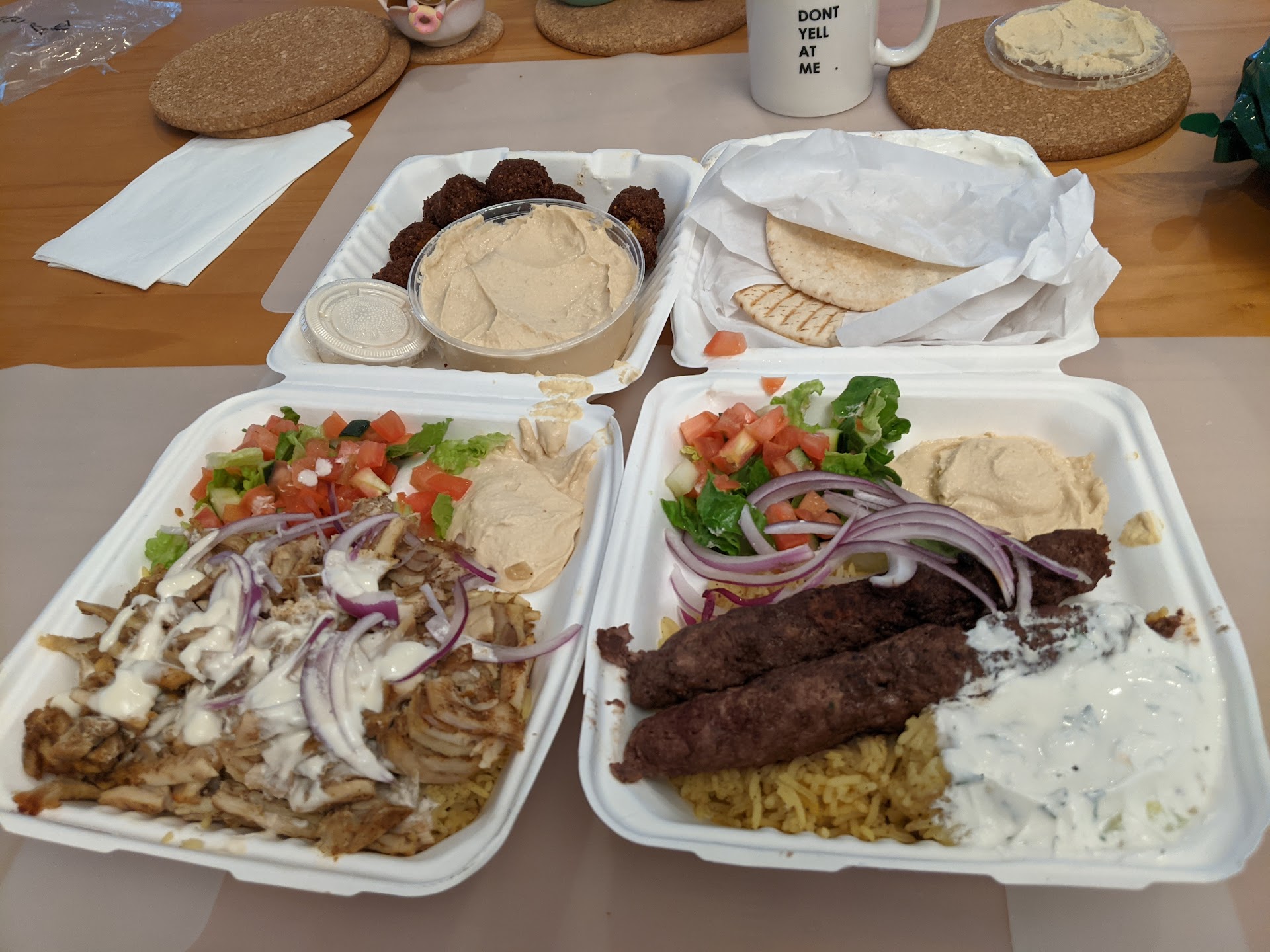 I discovered this place about 2 years ago before they moved to their current (more convenient) location. They were already one of my favorite Middle Eastern restaurants in the area, so you can imagine my excitement when they moved down the street from my work! The service is great, the workers are very friendly. I absolutely love the food here, everything is fresh, made to order, and priced right. You can see the gyro and shawarma spits cooking and turning while you watch them prepare your food. They serve gyros on a very thin pita bread (almost like tortilla thin) which is quite good. Not sure if this style pita bread originates from a certain country or not, but I have had it at few other gyro places and it does hold together better than the "puffier" pitas. I believe you can sub the thin pita out for a "puffy" pita, don't quote me on that though. They are usually packed around lunch time so expect a bit of a wait, but once you have their food you'll understand why.