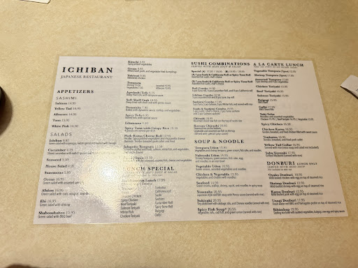 Ichiban has a wide selection of delicious sushi rolls as well as a number of fully-cooked options for the non-sushi/raw fish lovers in your group. The owners run the place, and treat pretty much every customer (first timers or otherwise) like long-time friends; they've known our son his entire life, and we've heard their family updates over the years as well, and they never hesitate to ask about my family when I'm there without them. You can tell from the number of Christmas photo cards on display (spanning several years) that we're not the only family that's gotten to know them! ;)