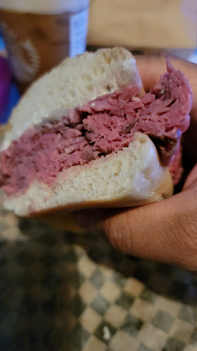 We ordered the Smoked Tri-Tip Sandwich, Jerk Chicken Sandwich, a side of Bacon Mac and Cheese. We also decided to try the Frosè - frozen rosè slushie. They had tables outside and inside, all were at least 6 feet away from another table. Each table had a sign on it showing if the table had been sanitized or if it needed to be cleaned. We decided to sit inside.