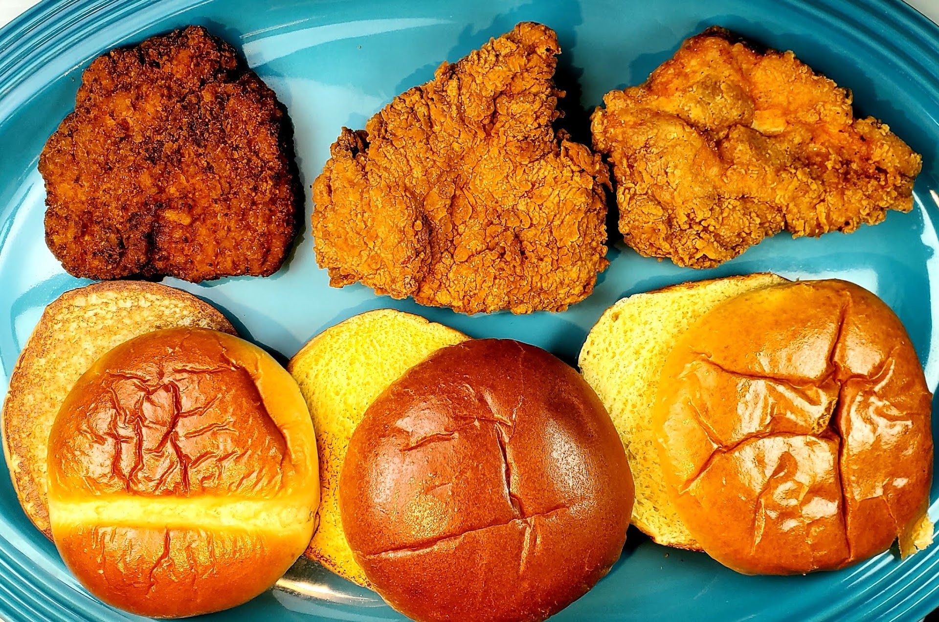 Plain bun and chicken combined by weight: KFC, 205.4g, BK 193.8g, and McDonald's 172.3g. Photo left to right,...
