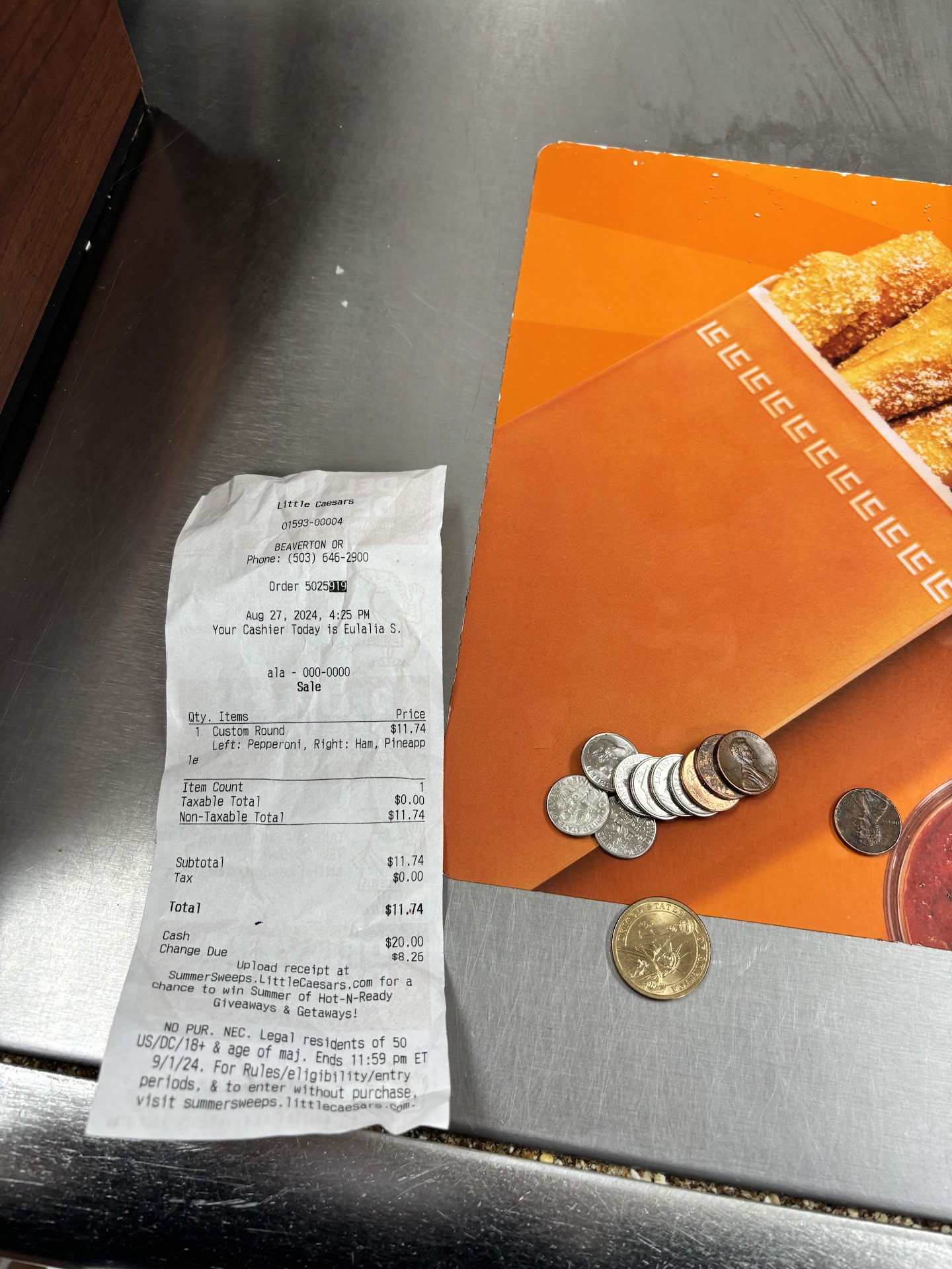 Read moreCalled to place a pick up order, half pepp half ham, I specified to the guy 2 times over the phone that we just wanted the ham not the pineapple. When I went in for my pick up the girl at the counter verified my order which is when I noticed that they ended up adding the pineapple. After again clarifying it 2 times with the girl at the counter that I didnât want the pineapple just pepperoni and ham and telling her that I confirmed it twice with the guy over the phone as well she proceeds to ask me if Iâm sure I didnât want it which I said no because it is also a price difference. She then glares at me with her laser eyes like thatâs gonna make me change my mind đ she then purposely gives me the wrong pizza & this is where I should have double checked my receipt but I added on some ranch so I didnât think much of the price change. when I went back not even 10 steps out the door, to ask for a replacement with my actual order & a refund on the price difference they charged me. During this whole interaction I didnât raise my voice or act out of character which I could have but didnât because it was a simple fix in my eyes. When the guy who assisted me over the phone finally decided to make his way to the front at first he tried playing it off saying that the extra amount they charged me wasnât much so it wasnât worth the refund I once again firmly said Iâd like my refund for the extra amount that was charged. For some reason he decided to get mad at me and go the extra mile to give me my refund in coins. When I confronted them about why they felt the need to be rude to me when they are to blame after I confirmed it 4 times on what I wanted & they decided to act dumb. If youâre going to give unnecessary attitude donât chicken out when they call you out. Keep that same energy. I understand the initial guy who helped me isnât fluent in English and it was hard to understand me yet Iâm sure you could have asked one of the many employees you have there to take over the call. But if I confirmed it again in person and you still decided to hand me the wrong order then donât be mad when people come back to correct you on...