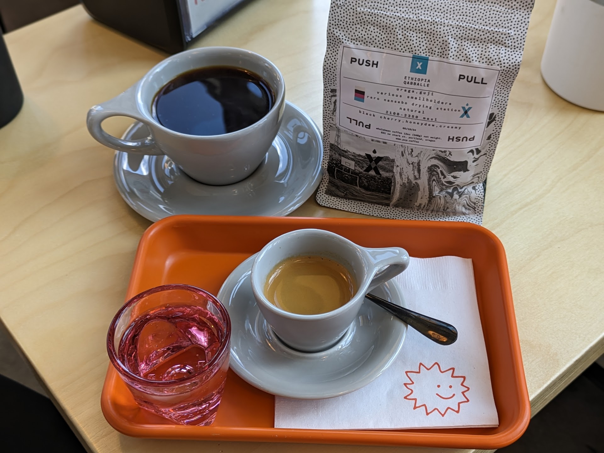 The service by the baristas was great, they werr friendly patient and prepared! They dont take your name or do name call though so you gotta watch for your coffee being done.