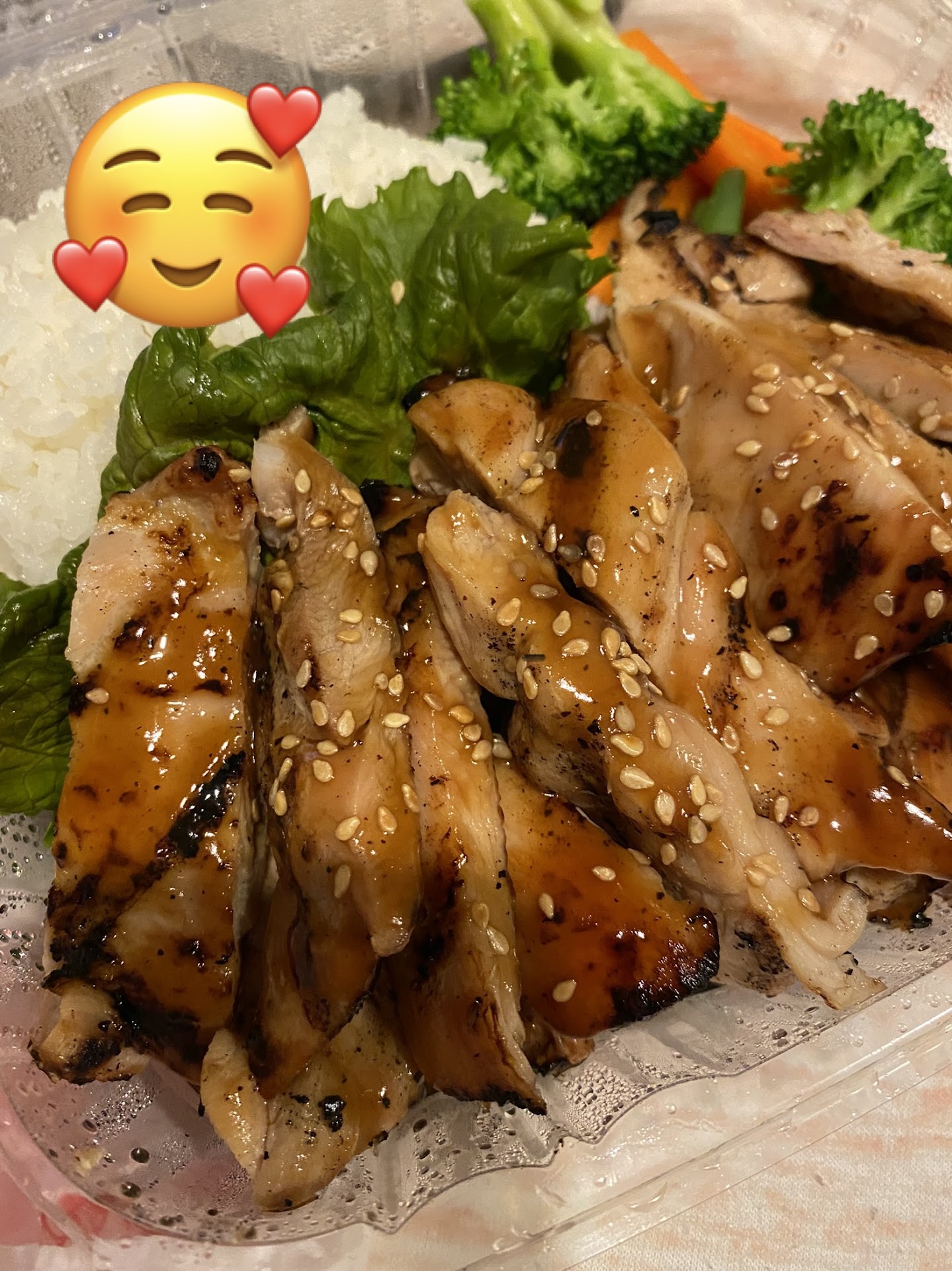 The teriyaki chicken is wonderful I crave it all the time. It comes with delicious miso soup that is so healing especially after a hangover and a salad with ginger dressing that’s always crisp and fresh. The teriyaki chicken entrée is big enough that it can be two meals or one meal and a snack for later and the chicken is much much better. The salad with the ginger dressing is fantastic.