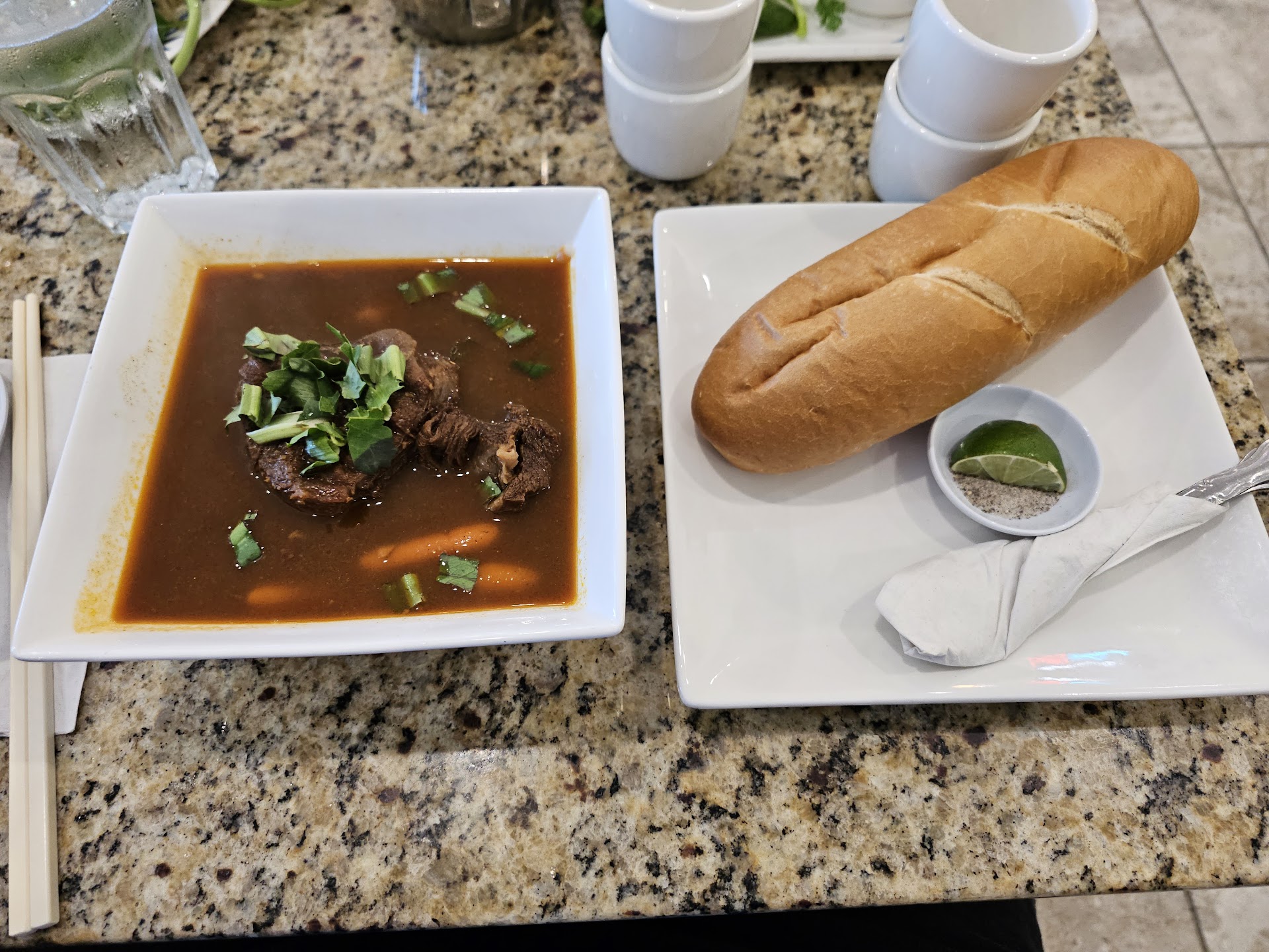 On my first two visits I ordered my two favorite varieties of pho. The first time, when the plate of sides was served, I was stunned to see something I hadn’t seen in ages - culantro, or “sawtooth herb”. I was only aware of it because an ex who was part Vietnamese told me about it and wondered why it didn’t exist here. Not only was that present, the pho itself was great. Their meatballs have much more in them than what I’ve had at any other restaurant.