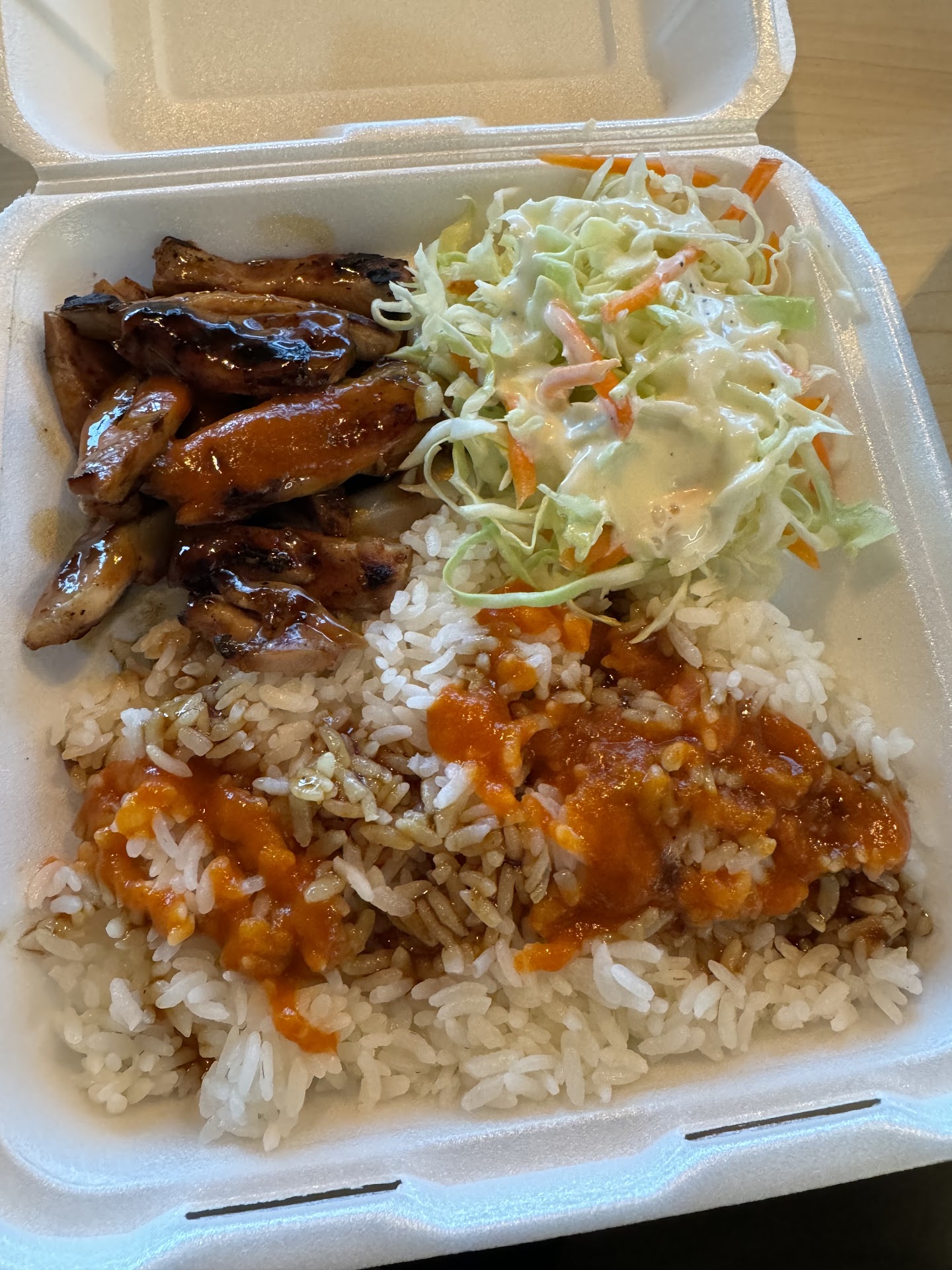 This place is very hit or miss. The last time I went here was in the evening and I ordered the standard teriyaki plate and the chicken I got was the driest most inedible chicken I've ever had from a place like this. I think they served me thrice reheated chicken from lunch or IDK when.. But it was bad. It wasn't even fit for my dog. :(