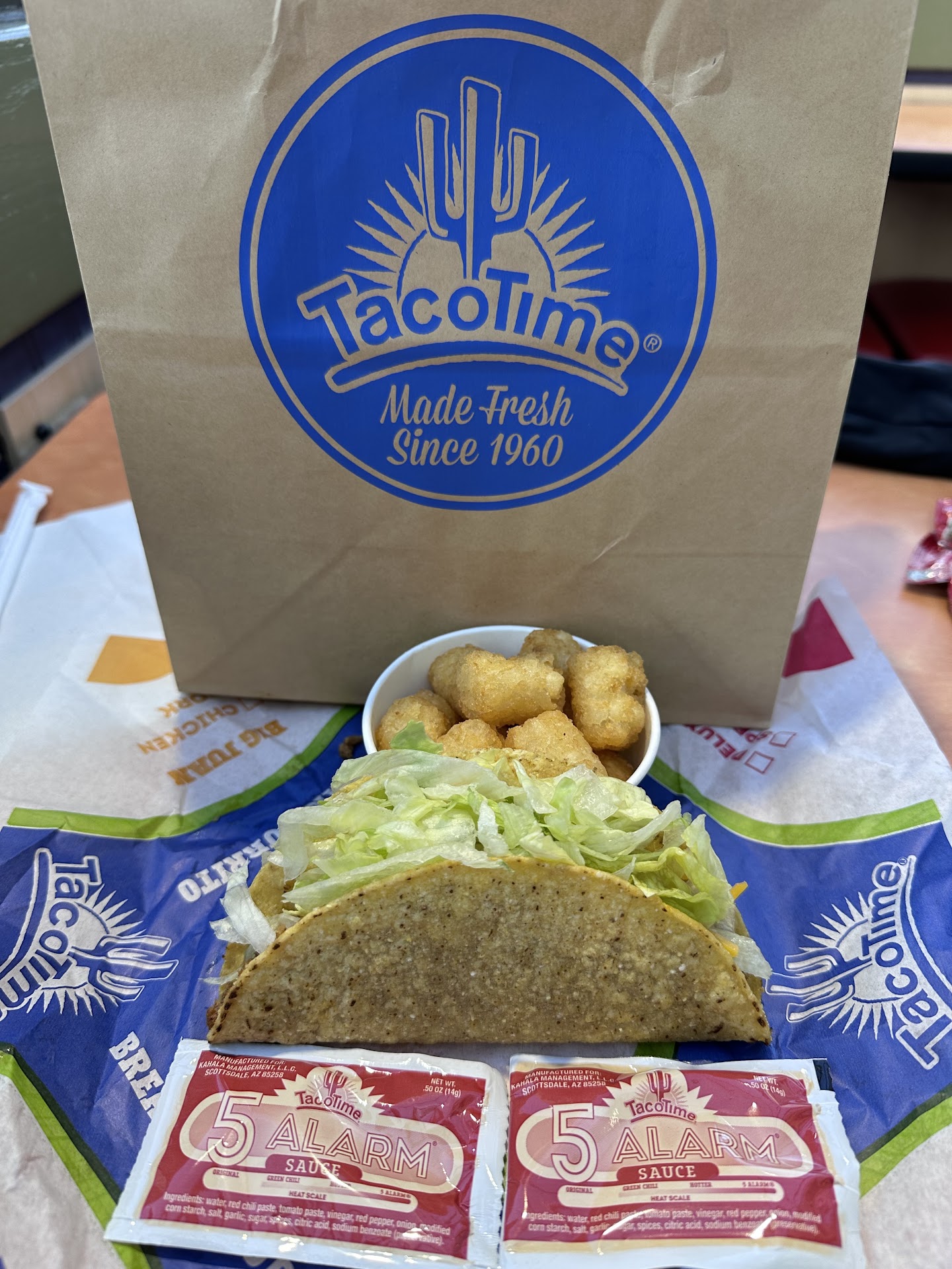 Ā Ā Ā Read more11/2018 edit: So I am a fan of Taco time. I have been going here for years but always through the drive thru. I came inside today to order because the drive thru line was quite long and I am honestly appalled... What I saw was the cook placing people's orders in a microwave to be sent to the drive thru. He did this with every order going out including mine. I asked about this and said I thought everything was made to order and fresh and they said of course they use all fresh ingredients.... Wow.... When it costs over $20 for my wife and myself to eat I really would expect orders to be made at the time of order, not hours earlier and shoved in a microwave