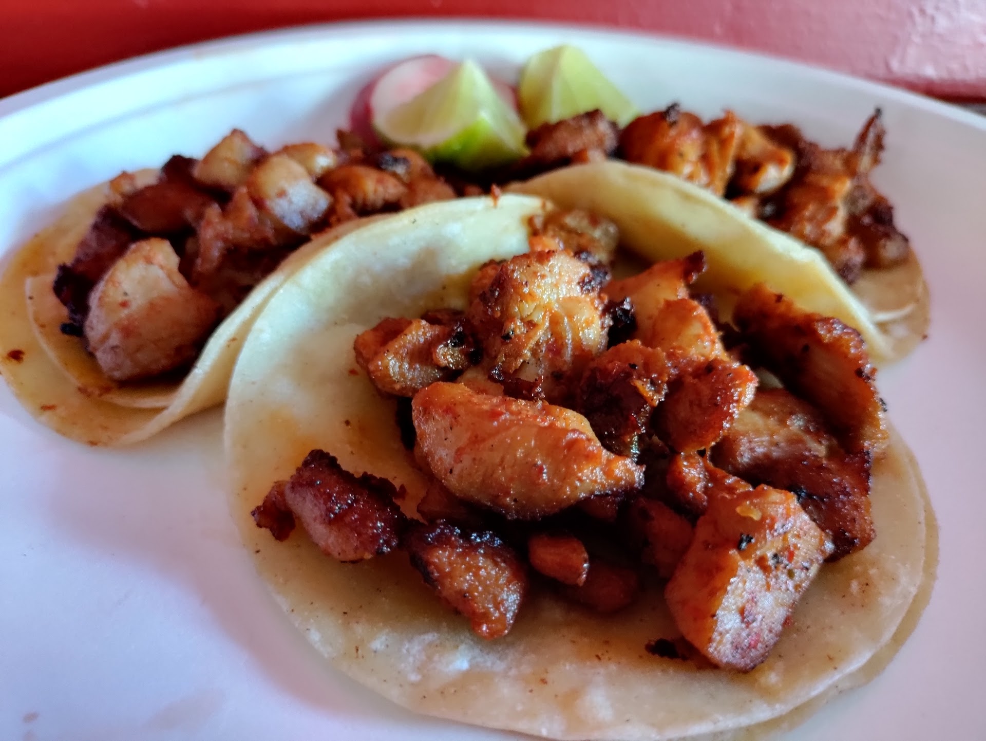 Everything sans tortillas is made fresh in house. The sauces are so good I like to take a bunch extra home for other stuff. No refried beans. The meat they use and how they season and cook it is fantastic. Pastor, cabeza, carnitas, and barbacoa are absolutely money. Cilantro, marinated onions, and roast peppers for days. All the meats are tender and flavorful with no sinewy or roughness. The prices are proper, too. None of that 3 tacos for $17 bull. $2.00-3.00 apiece.
