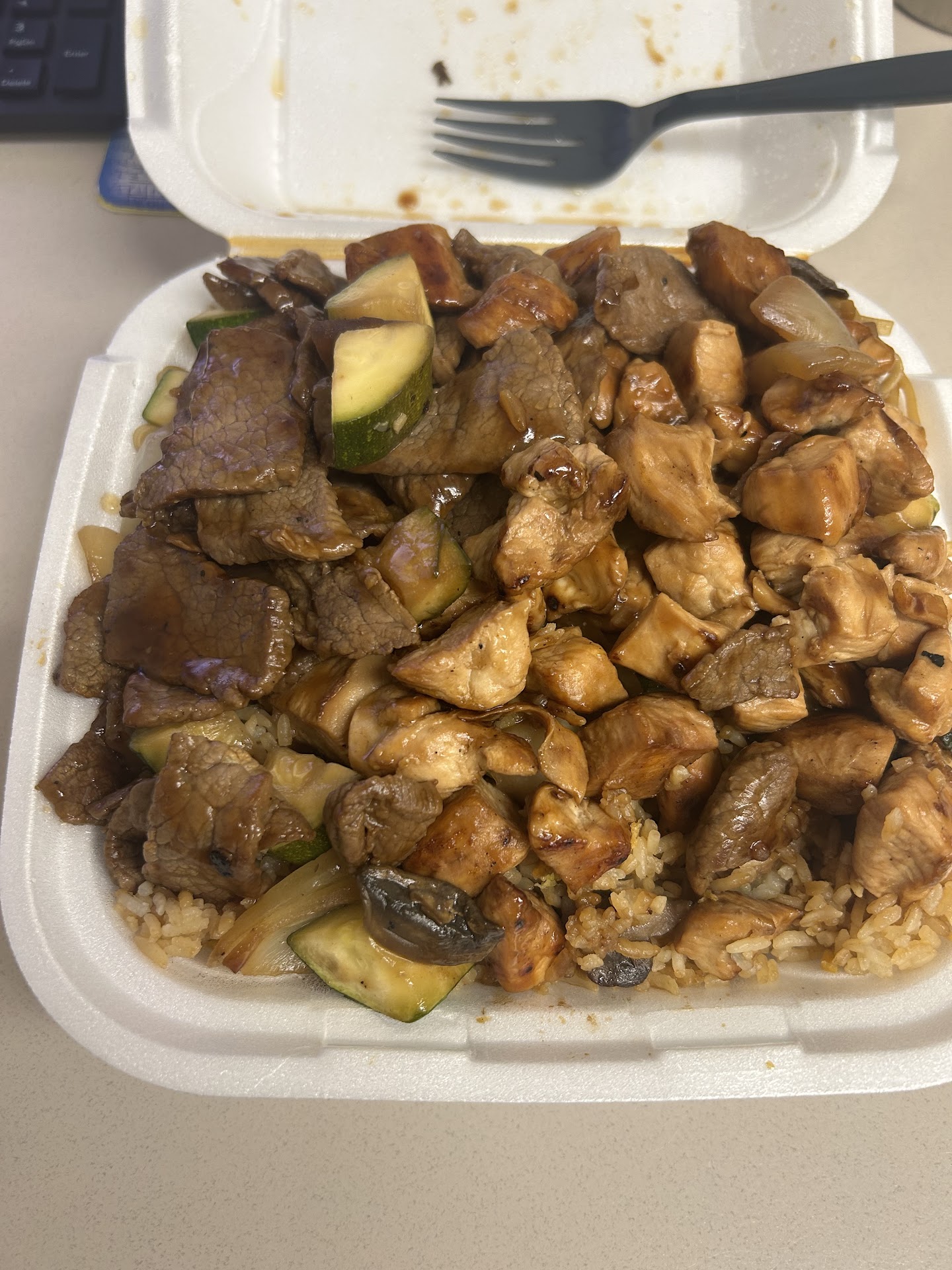 Read moreI frequent this establishment quite often and most of the time the food is pretty good. Prices are great very competitive for Hibachi style. But for me being a business owner and executive chef in the food industry, I'm kind of a stickler for consistency consistency. I order the same thing every time nothing different sesame chicken No Seeds rice lo mein noodle. On a few occasions I got something else other than sesame chicken didn't know what it was didn't complain. But this time I feel like I should voice my opinion. The noodles were very mushy horrible worst I've ever had and I've never had that from there before but I wouldn't have served it to my customer. Then I call and I talk to the young lady she ask me if I could just bring it back and they will remake it for me. I didn't have time to take it back so I said I would bring it back tomorrow which I'm not even going to do because 9 times out of 10 there will be some other type of problem and it's not even worth 7 Bucks. Hope they get their consistency right nine times out of 10...