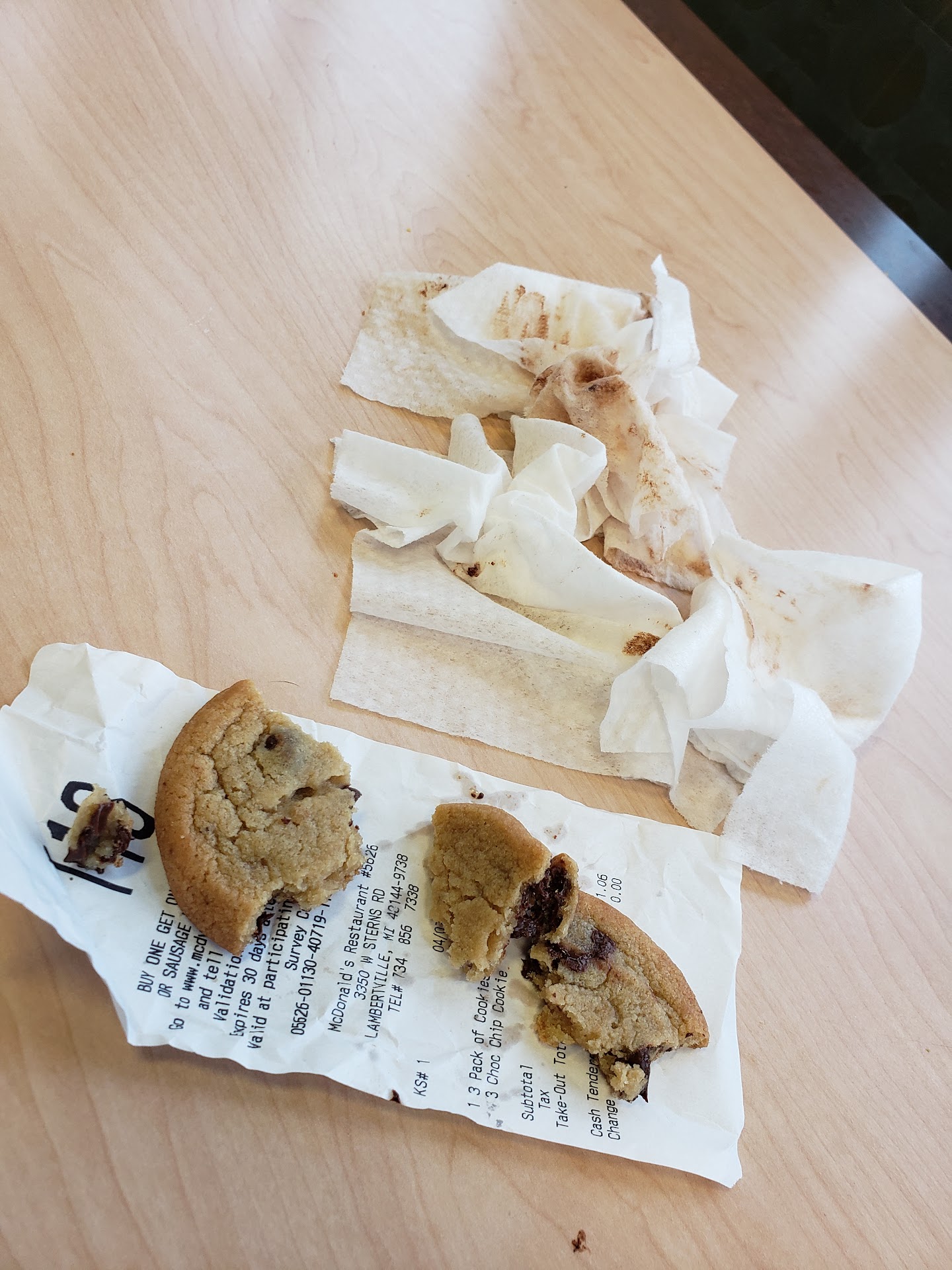 Read moreWorst McDonalds, I can definitely see why they have such a bad rep around town. I went in this evening because it was raining and I couldn't take my kids to the park like I'd planned and I still wanted to get them out of the house but being a Sunday evening, choices were limited. I figured I'd take them to this McDonald's for mcflurries and the play place. We walked in and I went to order the mcflurries and the cashier smirked at me and pointed at the ice cream machine and said it was down for cleaning. How typical. There was a man with two kids behind me also banking on ice cream, so it was unfortunate. I then decided just to get them a 3 pack of cookies and play for a bit anyway. I ordered and went to wait ... and I waited and waited. They had just brought up a fresh tray of cookies when I put my order in and they gave a pack to a kid and told him to be careful eating them because they were so soft they would fall apart, I didn't think anything of it though at the time. After standing at the counter waiting and watching other people get their orders while mine stood up on the screen still, I asked why I couldn't just get my 3 pack of cookies and go because my kids were getting rowdy waiting to play and I didn't feel like standing at the counter any longer just for 3 cookies that were sitting on the counter right front of me in the holder. I got the cookies and we went back to the play area and as I pulled the cookies out of the pack they literally fell apart in my hands and got melted chocolate and cookie dough everywhere. Apparently the people in front of us had ordered them extra soft and they made the entire batch that way. So I was given 3 under-cooked and extremely soft and messy cookies to split with 2 toddlers. Awesome. Thankfully I brought and wipes with us. Horrible service,...