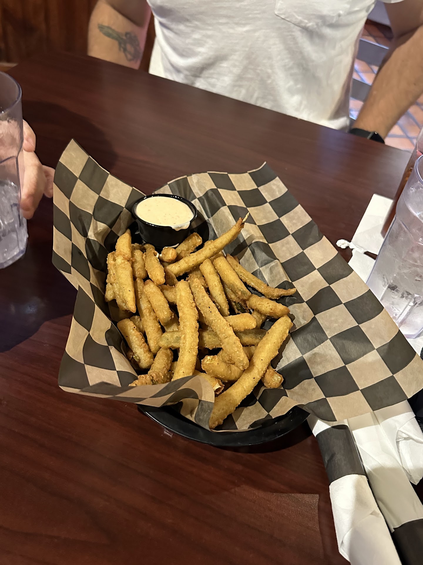 Atmosphere was great, however was expecting to hear country music or blues music, something along that line however when I sat down Madonna was playing on the radio. Need to change that selection of music. The server was very pushy about getting appetizer order, when we got our appetizers which were fabulous, she was pushy to get our dinner order. Moving way too fast!!!! Let people enjoy their experience and food. Dinner was kinda disappointing for 18.99 you get choice of 3, so I got double brisket and half a chicken, portions are SMALL, 6 slices of brisket is all and a half a chicken which was the size of a breast at KFC. Chicken was SUPER DRY. I don't believe chicken should be smoked for exactly that reason. But hey tried it. They didn't offer greens as a dinner side and that was a bummer especially since you offer mac n chz, cornbread, coleslaw and potato salad. I asked about the green beans and waitress said they were plain old green beans, well blah I can get that out of a can at home. Waitress did stay on top of bringing beverages to the table however what I didn't like was your serving barbecue which includes sauces and mess and we had to ask for extra napkins which should be already on the table for customer use. The cornbread was not cornbread it was more like cornbread cake and it was barely room temperature with one little thing of margarine that was melted when I opened it. BUTTER... REAL BUTTER, stop serving margarine because it's cheaper. When we were done eating server brought us boxes and when she took the plates away she came back with our bills did not ask us if we were interested in any after dinner drinks or dessert so I had to summon her back to the table and tell her that I was not done and that I wanted to order a dessert. The peach cobbler was excellent. All I can say is if you want me to come back and spend $100 again for an hour and 15 minutes stay at tops really should step up your game a little bit. The vinegar base Q sauce (yellow) needs way more vinegar it tasted like honey mustard sauce, the mac n chz tasted strange, kinda had a smoke flavor to it, keep it simple . GREENS, GREENS, GREENS!!!!! Please add them to your menu it is totally fitting for your place and please get a southern cornbread recipe, sweet cornbread on top of all that other rich food is just too much. The coffee Q sauce was fantastic. Please either get some seasoned servers in your place or RETRAIN the ones you have, a manager should be walking around the restaurant talking to tables to find out how their experience is and how the food and service is. I have been a server for 30 years and experience is everything when it comes to waiting tables, these little girls have really no clue. You should have left the "sports bar" feeling for Sidelines. I really didn't see anyone in charge on the floor just a bunch of young girls, hopefully when we come back there will have been some changes made, the BBQ and room for people to enjoy it should be front and center NOT the bar which was front and center. Your booths are way too small and the tables were wobbly, not good...