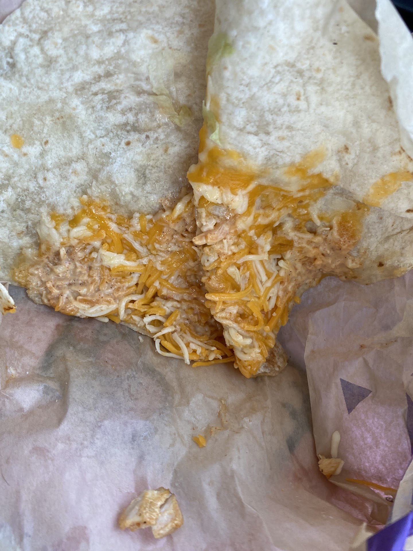 So I decided one day to go and get this$5 lunch bucket went to eat my hard taco little skimpy on the meat I thought🤔 little bit of lettuce cheese but I ate it no problem. Now I'm going to dig into this double chalupa when I picked it up before I even open it and felt lite it felt thin, but when I open up the wrap the bowl was not even full I took my finger and Doug to the bottom to check out the amount of meat, very little meat for a double chalupa, and in the bowl you basically can still see the top of the rim, now I wish I had took that picture a picture worth more than a thousand words. I wanted to take a picture of it and I should have. so I went back up and asked the guy could he put some more meat in my chalupa because it wasn't enough meat in there he told me he had put two scoops of meat and I'm trying to figure out two scoop from what a teaspoon, he didn't even like say well I'll put a little bit more in just to satisfy me the customer he just said sir we put two scoops of meat in there I said in what and I'm showing him the shell instead of just giving me a little bit more meat You probably throw that much away anyway.