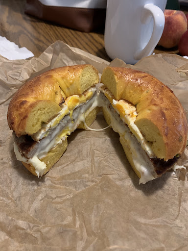 Read moreFirst timer here. Googled restaurant at 10:30 in the morning after we arrived at the Manchester airport. Needed a bite. She got hot coffee, I had iced. Plenty of accoutrements to do your coffee your way, including pumps for cane sugar and vanilla syrup among the many choices. Well-kept and very clean. Counter service. We placed our order for the obligatory smoked salmon and cream cheese on an everything bagel. Outstanding!! Fresh, hot bagel, perfectly seasoned with a little more salt than I expect, typically, but it was wonderful. Perfect chew. Delicious salmon (lox). Favorful, thinly sliced tomato, thin red onion, not too many capers, and plenty of good cream cheese. A really GREAT sandwich. We also picked up a half dozen bagels and two tubs of cream cheese to enjoy tomorrow. Thank you!! We’ll be...