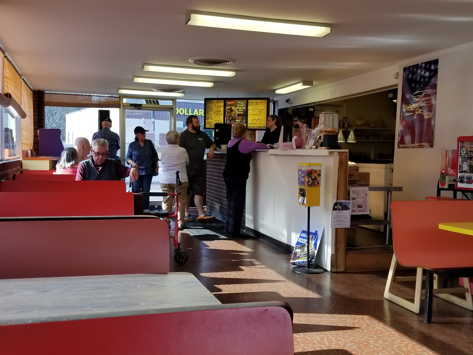 Small family owned business, better food than any chain. They generally do real basic lunch and dinner items... Burgers, fries, foot long dogs with chili. Not an organic or heart healthy place to eat! But the food is good and cooked on the spot, the fries are excellent crinkle cut and they're quick too. I'd strongly recommend them if you're considering a fast food lunch at a well known Scottish American chain or a Royal Burger or some such (not mentioning them by name mind you). Bob and Cheryl's will deliver you a much tastier lunch. And, there's a DQ ice cream joint next door. They have a room in back where they serve Italian food and have a salad bar... I've never eaten on that side. Atmosphere is pure 1960s but clean, there is a restroom, the place is nonsmoking of course. Parking is limited but available and Ada compliant. One caveat: they are CASH ONLY. No checks or debit cards. There's an ATM...