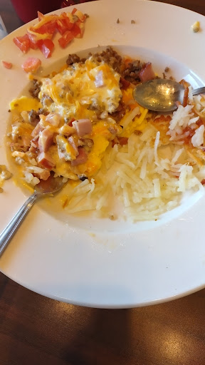Ā Ā Ā Read moreWent for breakfast and ordered 2 steamed eggs (like poached) on sourdough toast with hash browns and a piece of sausage. Our server was great, but the manager was cooking and he needs to be taught how to cook. After 40 minutes mine and my friend's breakfast came out, and I had 2 steamed eggs on biscuits, a blackened piece of sausage and no hash browns. I had to send it back. Our server took it back to the kitchen and then after 10 minutes came back with the right combo of food. My sourdough toast was barely toasted and was tough to cut and chewy, my sausage patty was blackened and very chewy and void of flavor; it was like eating a piece of black pudding one would get in the UK. The hash browns were too cooked as they were crunchy and hard. I don't know why the manager was doing most of the cooking as there a cook there, and while they were steady/ busy, the place wasn't packed or slammed. The two stars for service had to do with the kitchen as our server was great. The two stars for atmosphere was for appearance. Whomever picked that color of blue for the walls has no experience with color or basic decorating. The restaurant wasn't very clean, went to sit near cashier area to wait on a table, and there were large floor mats sitting on both seats in waiting area which should've been put on the floor where they belong when they first opened, and your biscuit gravy is super salty; that's literally all I could taste was salt, and I'm not a salt person. One final word, this is part of a chain, but in Indiana why use Heinz ketchup? You should be using Red Gold ketchup which is made in Madison...