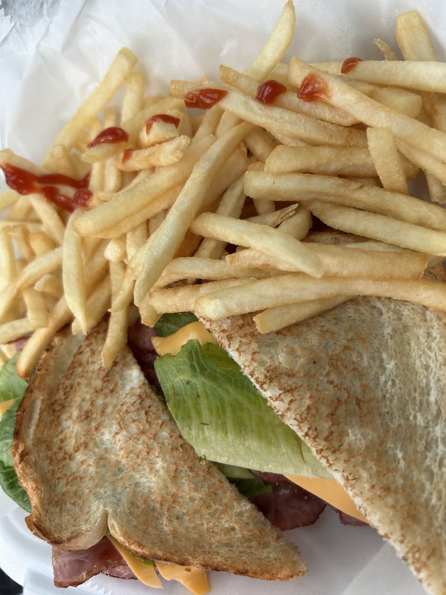 Read moreNow let’s talk about the food. I ordered the Turkey, Lettuce & Tomato (TLT) sandwich, and it was nothing short of perfect. The cook truly outdid himself. The sandwich was stacked with fresh, crisp lettuce, juicy tomato, tender turkey slices, and melted cheese all tucked between perfectly toasted bread. The fries were golden, crispy, and seasoned just right, with just enough ketchup drizzled to complement them without drowning the taste.