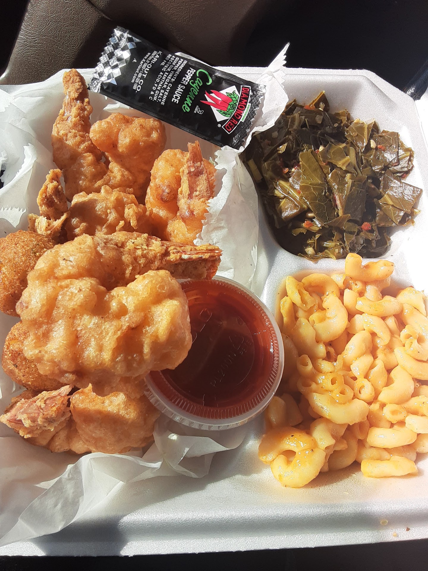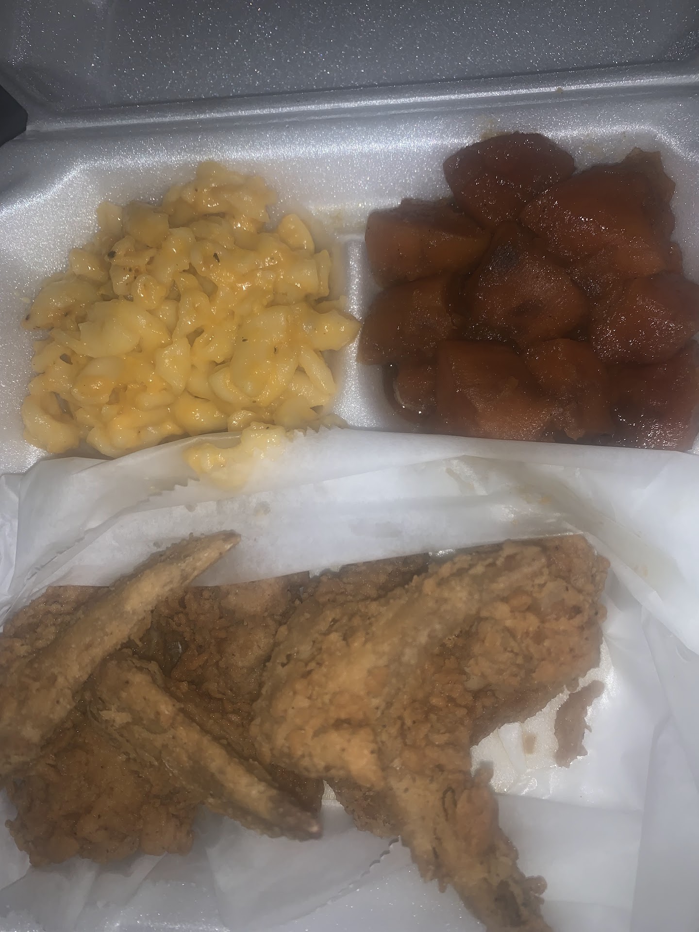 ย ย ย Read moreโญ๏ธโญ๏ธโญ๏ธโญ๏ธ I ordered the 6-piece wing dinner with a side of spaghetti and greens, plus a Polish Boy with fries, BBQ sauce, and coleslaw on top. The wings were fried to perfection โ crispy and seasoned well. The spaghetti tasted fresh with a nice pasta sauce, and the greens had a good mix of flavors, definitely homemade. The Polish Boy was solid too, just couldโve used a bit more coleslaw to balance everything out.