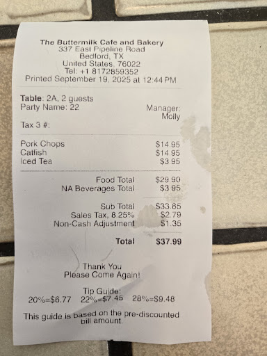 Read more3 of us ate there today for lunch. The waitress/hostess/cashier took us to our table, returned tossed the menus on the table with silverware didn't say a word and walked off. She returned a few minutes later to get our order. Then a different waitress brought our food within around 5 minutes. Fastest cooks in the South I guess. One guy got a coke and he said there was zero carbonation. We shook it, banged it and no bubbles ever came up, and for $3.45 for a flat coke, pretty sad. I got the S.O.S with gravy and sausage and hash browns I asked for a side of Cholula or hot sauce. I didn't get my hot sauce or Cholula, so I asked again. The biscuits were room temp, gravy was mildly warm at best, hash browns were cold and seemed like they were cooked that morning and left close to the gridle for some warmth. Again we got our food within about 5 minutes of ordering it so no way was this cooked for us, just slightly heated up. After waiting a few minutes for them to bring the hot sauce, I then got up and asked the waitress again for hot sauce and she finally brought it after the 3rd time of asking. They charge you a fee for not paying in cash, but no where is this said until you get your receipt. I didn't finish my food, the guy who got the Coke said the same as me, we would never be back. The 3rd guy liked his, but said it was over priced for what he got.