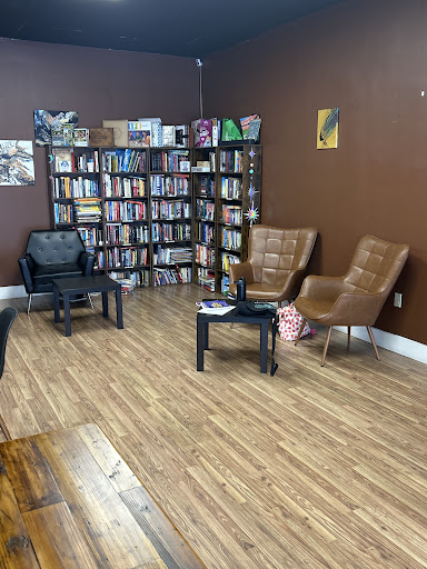 Ā Ā Ā Read moreI wanted to love this place, but couldn't, it was just ok. The concept is fabulous but the execution is not. The food: I had coffee cake and an iced Chai. The coffee cake was delicious, the chai was not. I was served the cake first and waited too long for the Chai. It was supposed to be iced but had warm spots and the ice was all melted. The atmosphere: The speaker for their music was too loud and on top of the bookshelf area. They may have been trying to drown out the sounds of the rage room next door. The book concept is great, like an honor system library for most selections, the atmosphere to read the books could improve. They also had games and puzzles which was cool. The...