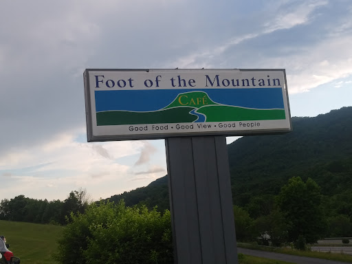Read moreVisited Foot of the Mountain Cafe following a Sunflower Festival just a few minutes away, and it was wonderful! Ordered the Aunt Eakin burger medium, and the flavors were absolutely delicious! Melted pimento cheese with a cheesy sweetness contrasted well with the acidity of the crunchy fried green tomato, with bacon for more crunch flavor. The expertly cooked to medium juicy beef burger was presented on a toasted bun. I would order this burger again and again, as the flavors are so balanced, and it's craveable. The accompanying Mac and cheese was flavorful, but not outstanding. My dining mate had the barbecue sandwich with slaw, and it was deemed delicious. Their onion rings were excellently cooked to a nice crunch, and were not soggy. I noted many diners enjoying the onion rings so they must be a speciality here. The two wait staff were overextended and very busy, but our food came in a timely manner, When ready to leave, we waited a considerable time to receive our bill, as the restaurant had filled quickly after our arrival. The atmosphere is plain, and some of the seating is old. There is an outside patio dining area which seemed pleasant. Great food with fair service, beautiful mountain views, and excellent community and Interstate dining support keeps this place on its toes! I will return and order that...