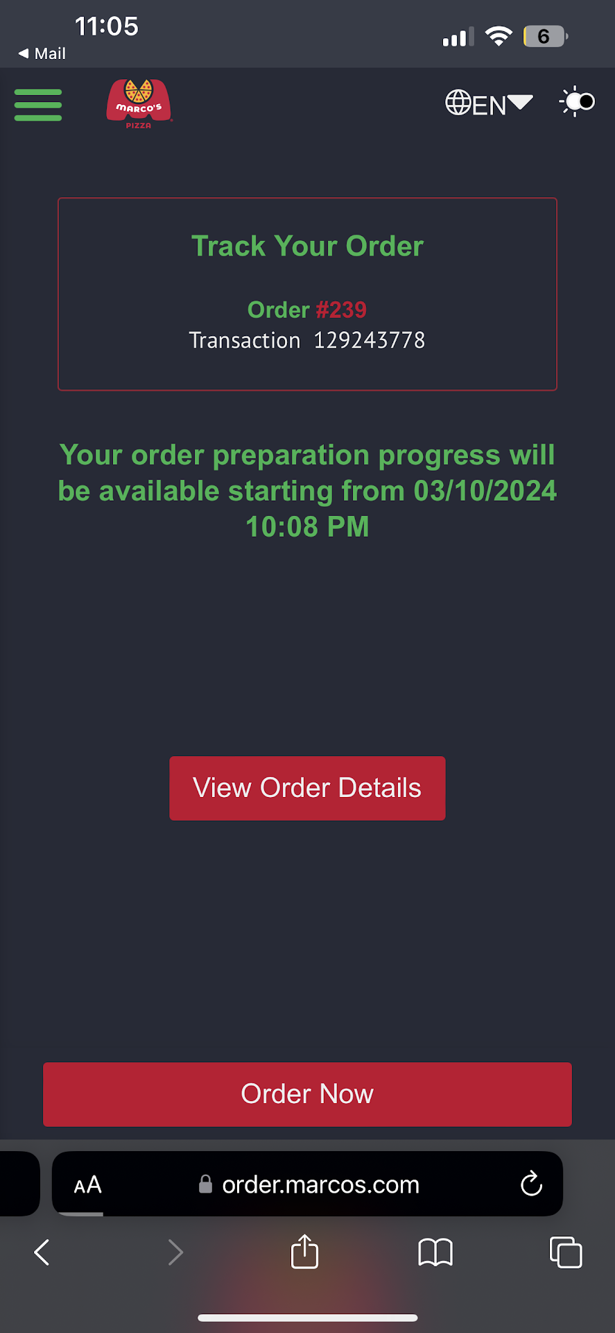 Tonight was the last straw. I ordered a large pizza and crazy bread through the Marcos app. After waiting longer than usual, I called to check on the order (since the last two times this exact issue happened). The same young man answered the phone with an attitude, told me they were âclosed,â and when I explained that I had ordered before closing and just wanted to know where my food was, he hung up on me mid-sentence.