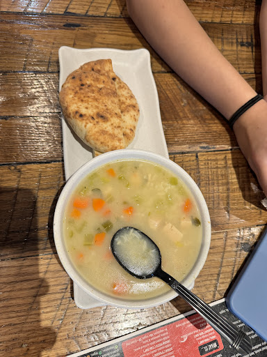 Read moreMy first time to any PRESSED CAFE. First of all, the brands effort to impress us def 5 stars. The place was packed, huge, adorned with a giant stone fireplace in the center, with a full bar on the opposite side of eatery, also has tables and stools to sit and enjoy a drink/meal. Apparently, it was thought-up by a couple from Massachusetts, that really were into the process/pressing of coffee beans, and grew from that location into a few. This location, Beford, NH is very big. The care that was put into the decor, the lighting, is great. The signs are in both English&Hebrew, as this is language of couple, I imagine. The staff are all quick to be friendly, and helpful. Upon ordering, you get a number to put on your table. The staff bring you the food. It did come fast. I ordered a smash "impossible cheese burger," and asked which of the sides the waiter preferred since it was my first time. They have a huge jug of free lemon-water, the cups right beside it. So...the waiter suggested the pasta salad w/balsamic vinaigrette. 🚫 Do not get this. So, the plates arrive, and they are huge plates (I thought were ceramic) but are made of some type of recycled material. I went hungry, on purpose. The food was put on the plate in a rush. My burger was a bit of a mess. I took a bite of the pasta first. It tasted very wheaty, dry and the only other ingredient was the balsamic. Very bland. And, very chewy. I could not force myself to eat the small $5 pile. Biting into the burger, texture was great, and the veggies let/tom fresh-but there was a spice on the burger that did not taste good. I later found-out it is a middle Eastern spice, Sumac , it tastes like cinnamon to me. And was a turn-off. I will say that the ciabatta bun was nice. Thank Goodness for the fries my daughter ordered, those she shared and we're really tasty. Also, she got a. Original chicken sandwich, which she was happy to gobble up. I am looking forward to visiting again and ordering something different for sure. $9.50 for that burger...