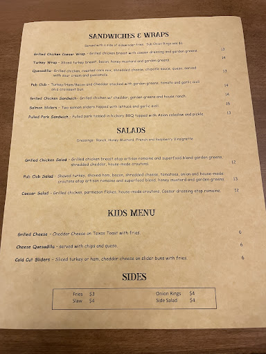 Went here to have lunch today after we seen a friend post pics of the place. We arrived right at opening time. When we entered, there were 3 employees right by the entrance but we were not even greeted as we came in. The inside of the restaurant is beautifully decorated and was super clean! The service was decent and pretty fast. There were at least 4 other tables with people being served, along with us, so I was impressed with how fast we received our food. The server wasnât too sure of questions we asked about the menu. My husband asked for a Laplander Blonde beer and was told they didnât have itâŠthe explanation given made no sense. The bartender said they were sent that beer by mistake, but yet it was on the menu! Confusing. A little advice also, please add your drinks to the menu. I dislike being asked what I want to drink when I have no idea what you even have!! Our server was nice, but she wasnât very friendly. I did love the glassware they used for our drinks, very fancy!! The sweet tea was awesome as were the pork belly bites!!! Iâd definitely get those again! We also tried the mozzarella sticks. They were good, but not my favoriteâŠ.wasnât crazy about the marinara or the ranch either. My husband had the grilled chicken sandwich meal. He really liked itâŠsaid he would order it again. I had the classic burger with cheese and bacon. While it was ok, it just wasnât the best burger Iâve ever had. The fries were quite delicious though!! My hubs decided to try a shot of the Peerless Bourbon Whiskey. He liked it quite wellâŠjust not the price tag that came with it when the check cameâŠ$16.50!!!!!! Thatâs a little steep in my opinion. I really wanted to try the chocolate cake, but was informed they were out of it. Mind you, there were only 4 desserts listed on the menu to choose from, and they were out of two of them. Disappointing. I would consider coming back, but I would love to see a little more of an extensive menu. Maybe steak, baked potatoes, Mac and cheese, some veggies, chicken tenders, some kind of fish! Those are just a few of my suggestions. Overall, it wasnât a bad experience! It was a slightly pricey lunch though! We had 1 beer, 1 tea, and that whiskey shot, pork belly bites, mozzarella sticks, grilled chicken sandwich meal and classic burger meal, and it was a whopping $73 before the tip!! Just so you know what youâre getting into before you go!!! Being this is a local restaurant in my hometown, I wish them much success!! I hope they can get people to keep coming in and...