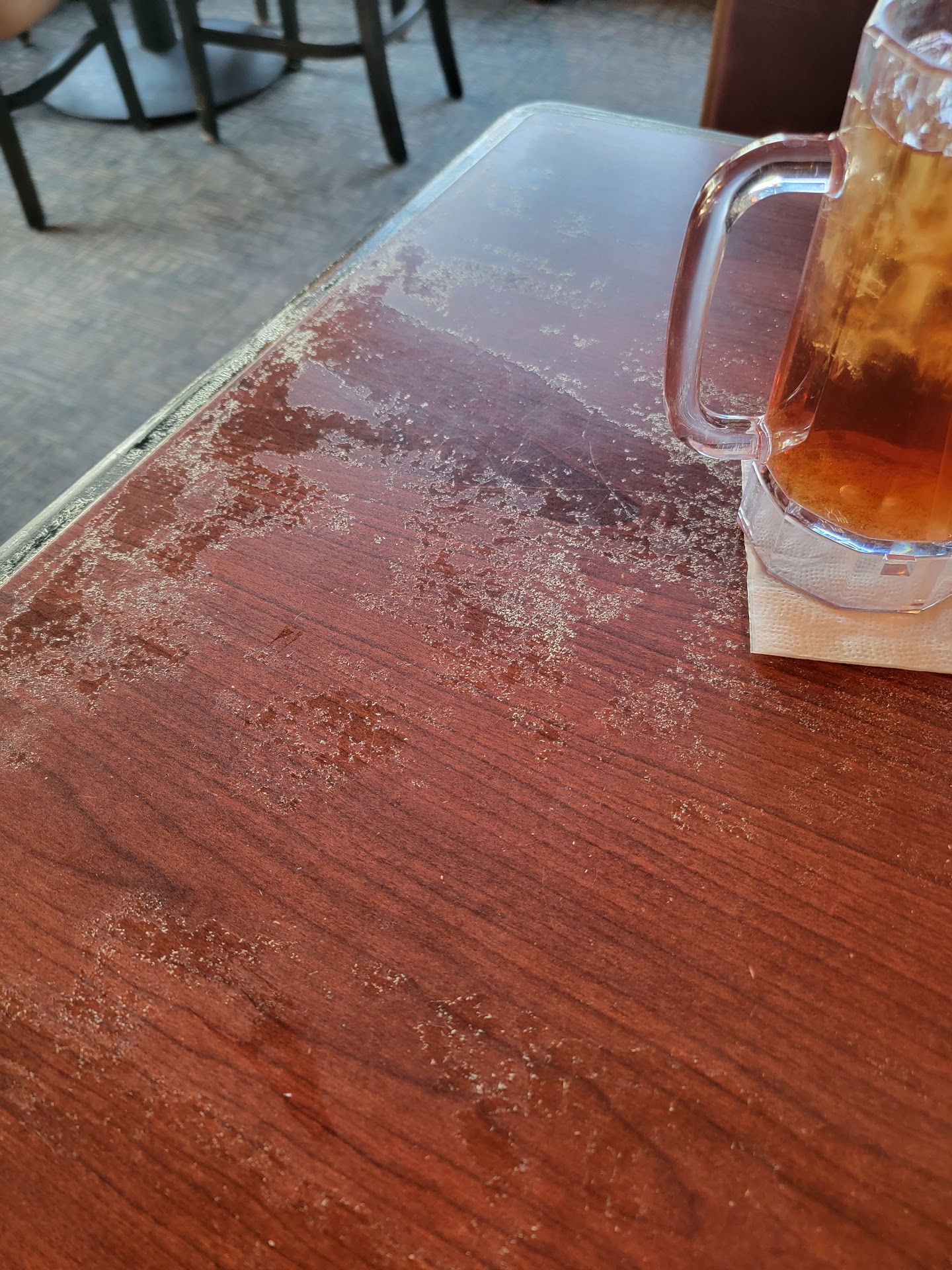 OH they ran out of baked potatoes after I ordered so assumed my order would include it. Food arrived w/o the potato. Bartender never checked in to see if I wanted to sub something. I inquire and finally get her to agree to sub a sweet potato at no additional cost. She did not want to include the sweet potato as a replacement.