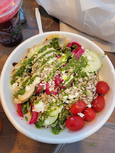 *Food: The menu boasted an impressive array of dishes crafted with fresh, locally sourced ingredients and creative flair. I opted for the pesto chicken quinoa bowl, which was a symphony of flavors and textures. Each bite was a delight with a slight crunch of sunflowers seeds. The portion was generous, and I left feeling satisfied but not stuffed.