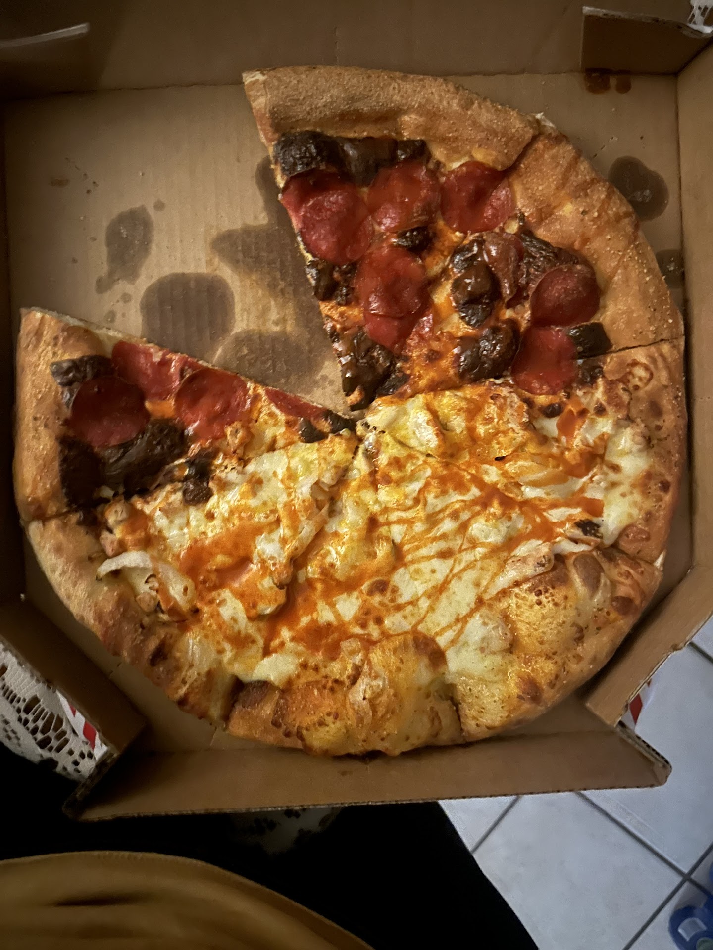 Read moreI was extremely disappointed with my experience today. While I understand food business can be stressful and rushes happen, my experience today is unacceptable. I waited an hour and 15 minutes for One large pizza, half pepperoni, half buffalo chicken. I checked multiple times, the first time being told twenty minutes after I had already waited the estimated 20 mins by the app. I was then told by a different employee that it was a gonna be another 15-20 mins on the pizza and that it was third on the screen. Since I had already paid for the pizza I went to park one last time and then received my food. I opened the box only to find that the pepperoni was burnt, there was barely any sauce, the crust was burnt with air pockets, and they put buffalo sauce on all of the pizza and not just the buffalo chicken side. This experience was unacceptable and I am extremely...