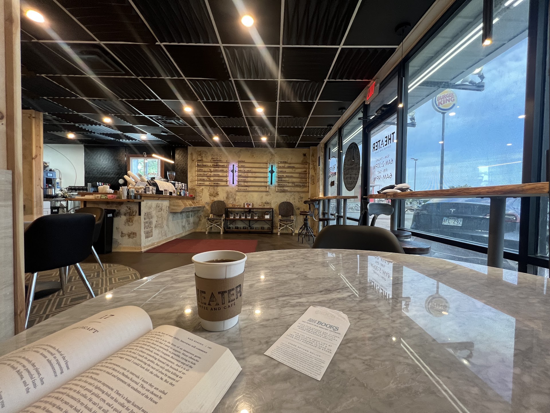 The space feels impersonal and insincere, like it is trying too hard to be authentic. The music, Christian pop I guess, was too loud to have a meaningful conversation. Despite the Christian-themed music there's a large painting of a man in drag off to the side, which I found an odd combination with the music. The rest of the decor looked hastily put up and the blacked out/covered up windows felt oppressive. Why are they trying to hide the world? Even if it isn't the best view, some sunlight wouldn't hurt them.