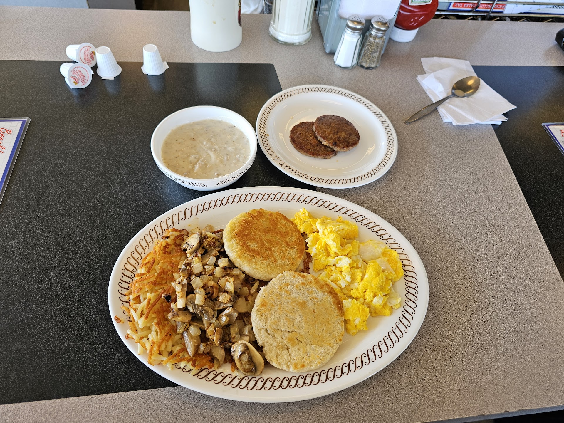 ย ย ย Read moreBad attitude with staff. Filthy behind the counter. Had to order hashbrowns three times before they were correct. The waitress finally cooked my hashbrowns and cooked up correctly the chef refused to . Not to mention with the bad attitude each time I asked for it to be corrected. They were burnt to a Chris. Real crispy! Todayโs date March 8 three people on staff. cooks smoking cigarettes outside customers waiting for food. waitresses complaining about their job. Iโm not one that usually complain but this was just so out of character for this waffle house. I eat here quite often Never have a bad service. for the restaurant look this filthy and with a bad attitude. I wonder if the manager was at work if they would have a different attitude. I actually feel guilty now and afraid to ask for corrections. The attitude I get is if it fits in my fault Very weird. Just thought I would share...