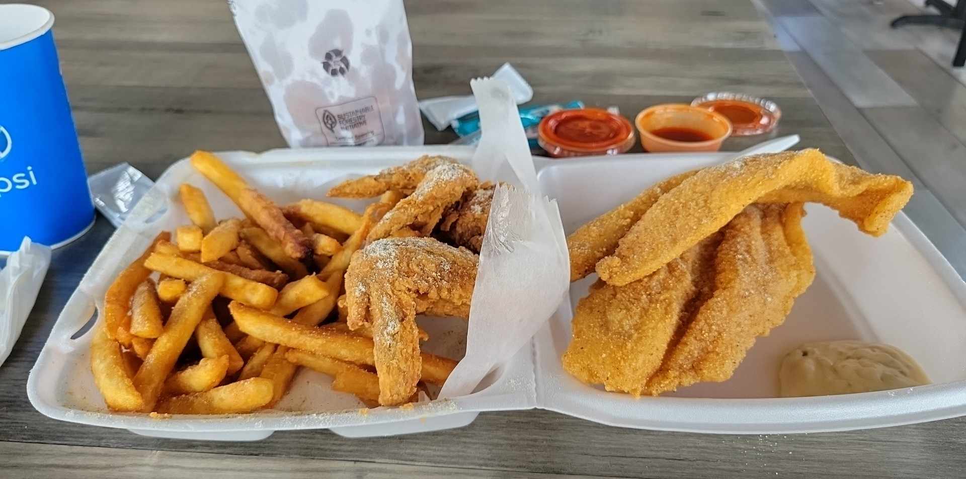 ย ย ย Read moreStaff was extremely nice, however was quite disappointed in the food we purchased. Cod was overcooked (super crunchy on the inside), Catfish was overcooked (supery crunch on the inside too,) as well as had the skin on it which caused it to be slimy on one side (other locations remove the skin). The only thing that actually "tasted" good were the fries and chicken wings. Was extremely disappointed in this as I bragged to my wife how good Jordan's was (as I have a location near work off Shadeland Ave), and her comment after trying it was that she'll never try it again.