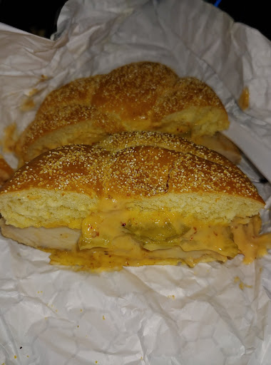 I get the sandwiches home. They are supposed to have a toasted bun, lettuce, tomato and mayo per the menu. The bun is not toasted and soggy, there is no lettuce and tomato, the mayo is orange colored (???) and overly abundant, and when I tried to cut my sandwich in half, my knife couldn't get through the chicken. It looked as though something had thrown up on the sandwich. I couldn't even get myself to try it.
