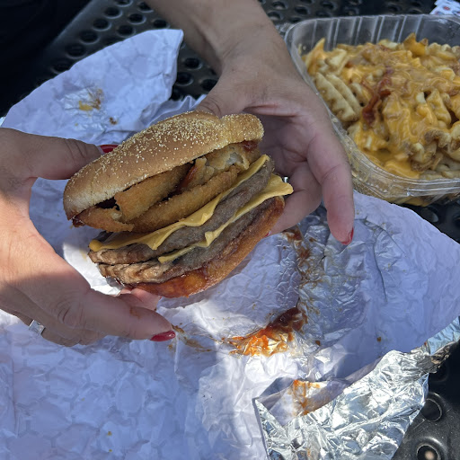 From the moment you unwrap your order, you know you're in for something special. The BBQ Western Burger double burger patties, cheese and onion rings was an absolute knockout—juicy patties, perfectly melted cheese, crispy onion rings, and that signature cornmeal bun? Every bite was stacked with flavor and nostalgia.