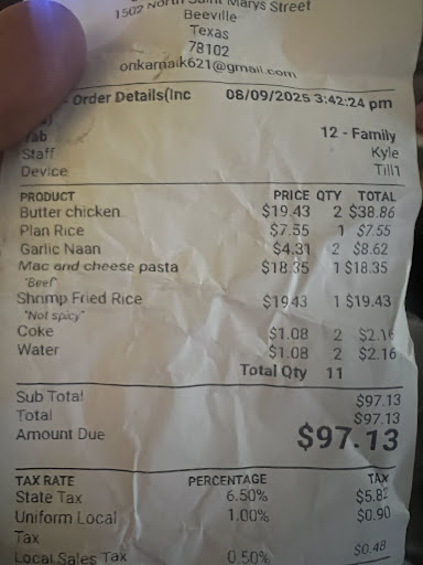 First I’d like to say the atmosphere is nice and also a new work in progress. Waiter was polite. My issues are the food quality and PRICE! As a truck driver I’ve eaten Indian cuisine all across the country. This was the first butter chicken I’ve had that tasted like Cambells tomato soup with a couple very small pieces of chicken. Also understand the finished product was nothing like the images posted which after this experience I can assume are downloaded from another site. The “bowl of soup” also costs $19.43 and does NOT include rice. Rice is another $7.55 which brings the cost way too high for the quality you’re receiving. My mother-in-law asked specifically for a very mild rice and received a quit spicy entree of rice. I hope this helps this restaurant makes better quality because this area could use this restaurant and atmosphere. I’m very doubtful we will return until I hear better more authentic food is a higher priority and they control the high costs for their below average product....