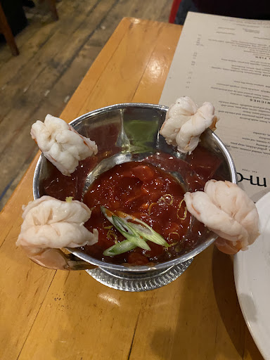 Read moreMy husband was recommended this restaurant by his coworkers and they were not wrong. The food was great and our server was wonderful. We started our meal with the onion rings, which was more like a haystack of fried onions. The onions were well seasoned, almost too well at the bottom, and the sauce was really tasty. We both got soups with our entrées I had the soup of the day which was a lovely beef and vegetable and he got a clam chowder, which he said was really good but I personally don't like. They were having a special on the halibut with a rice pilaf, hollandaise, and asparagus and so my husband chose that for his meal. I chose the pan-seared Ora king salmon with parmesean risotto, asparagus, and a carrot and sunflower seed pesto. Both our entrées were $34 and I wish I had taken a picture of them because of how beautifully they were plated. He enjoyed his halibut however we both thought the salmon was better seasoned than the halibut. Just thinking back on the food is making my mouth water right now, it was that good. We both indulged in a little alcohol to go with our meals, he had two huckleberry mules and I had one lavender honey lemonade, both were very good and reasonably strong to us. And we finished our meal with our very first creme brulee, theirs is a lemon creme brulee, and honestly this was what made the final price of our meal worth it all and more. We will go back again for sure! I've been asking all my coworkers if they have been and I am recommending Mint...