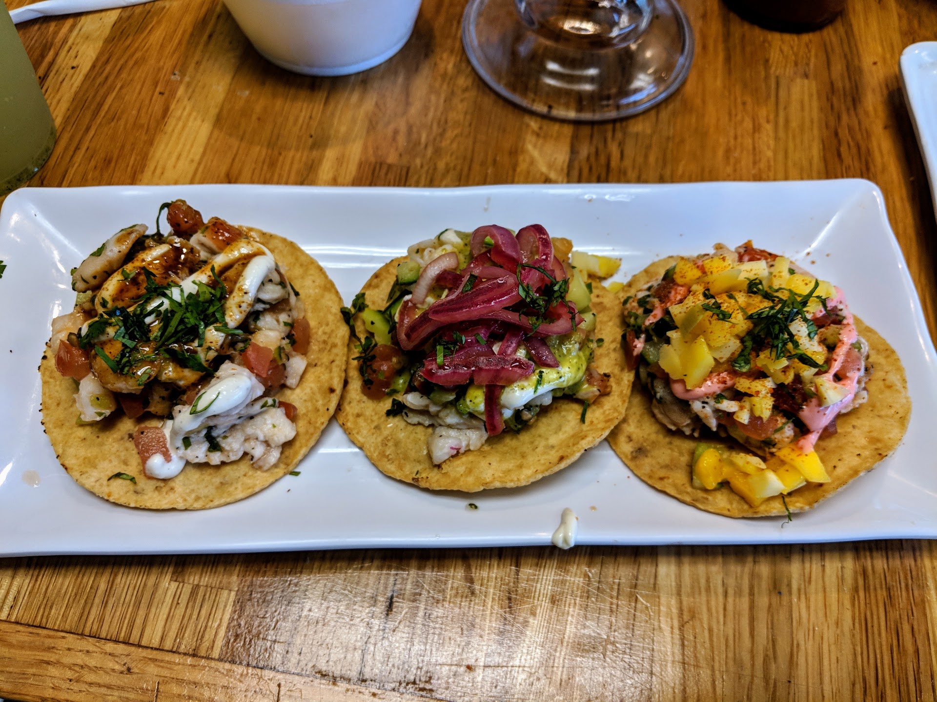 Read moreDo food and customer service go hand to hand?. A typical restaurant greets you even McDonald’s does. No greeting. There’s no direction here. Nobody told me where to sit or how many in my party. It appears that this restaurant is family run. Ppl come in and out whether they’re workers or friends who knows but looked unprofessional. It’s a small place with a predicament like that you expect ppl to be careful. While I was there one guy knocked over cup lids and another guy knocked over a water cup. Now the food. Aesthetically it’s great. Taste wise not so much. The mahi and shrimp tacos have a fusion of flavors that don’t go well with each other. Too much lime, dressing and seasoning. One taco I couldn’t finish because it was just too wet from the juices. I don’t like giving bad reviews in fact this is my first 1 ⭐️ review. The ppl seemed cool and friendly but I have to call them out. The floor was dirty and the clumsiness can’t go overlooked along with the bad service and food, B food grade on window by the way. If you’re reading this I hope you guys step up your service. You guys are successful and noteworthy but even so one should deliver everyday. Yes I’m just one customer with a bad review that should not be...