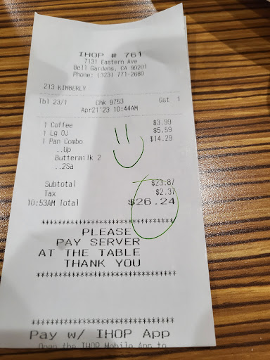 Read moreI give it 4 stars it was nice it was clean the service was good at least our waitress was good the maitre d she was kind of of snooty but because of the fact that she wouldn't let us have a high chair where we were sitting and she was really snotty about it I understand why but she could have worded it another way and she could have been nicer about it but other than that it was okay because of the person that I was having breakfast with we had a nice time and we could have a nice conversation and we didn't have to yell and we could talk to each other without having to repeat ourselves and stuff so it was really nice and I enjoyed my time with my friend so that was a plus it made it very comfortable to eat there was my first time eating in that IHOP so I just might eat there again if I'm in the area cuz it's not in my area it's out of my...